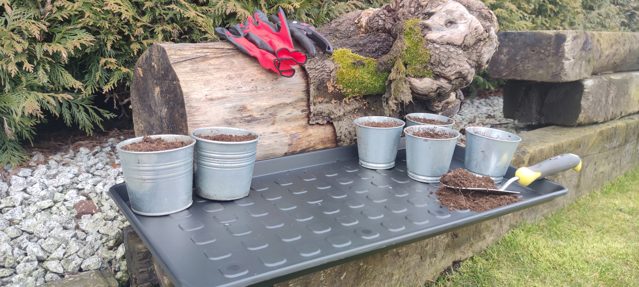 Podstawka umożliwia wygodne przesadzanie i rozsadzanie roślin w dowolnym miejscu w domu na balkonie, w ogrodzie, na tarasie pozostawiając podłogę nieskazitelnie czystą