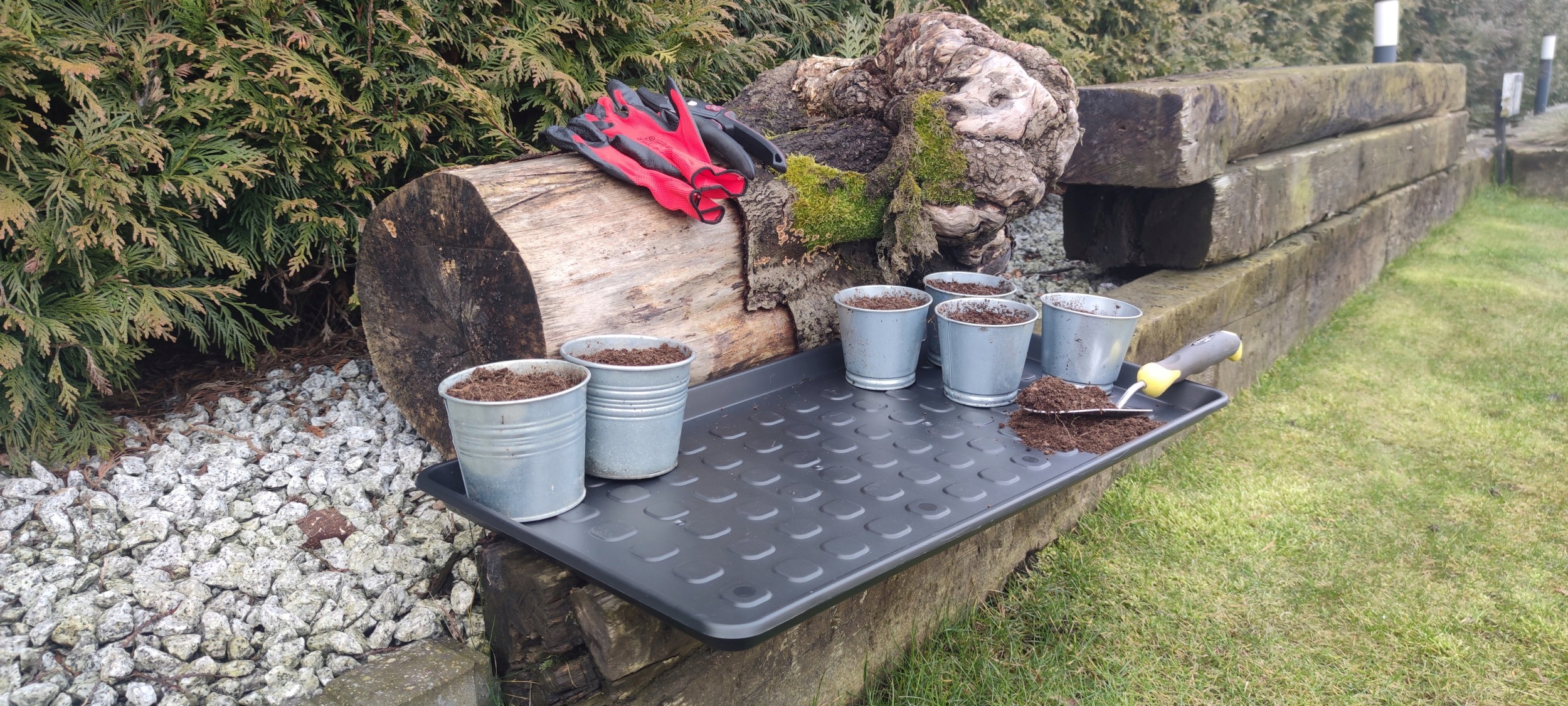 Solidna duża Podkładka/Mata do przesadzania i rozsadzania roślin - praktyczne i trwałe rozwiązanie, z dumą wyprodukowane w Polsce z recyklingu. Nasz produkt łączy solidną konstrukcję z zrównoważonym podejściem do ochrony środowiska.