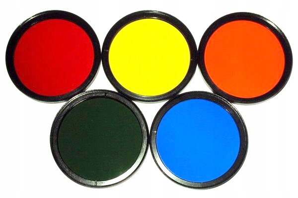 Zestaw zawiera: filtr czerwony, filtr pomarańczowy, filtr żółty, filtr niebieski, filtr zielony, etui