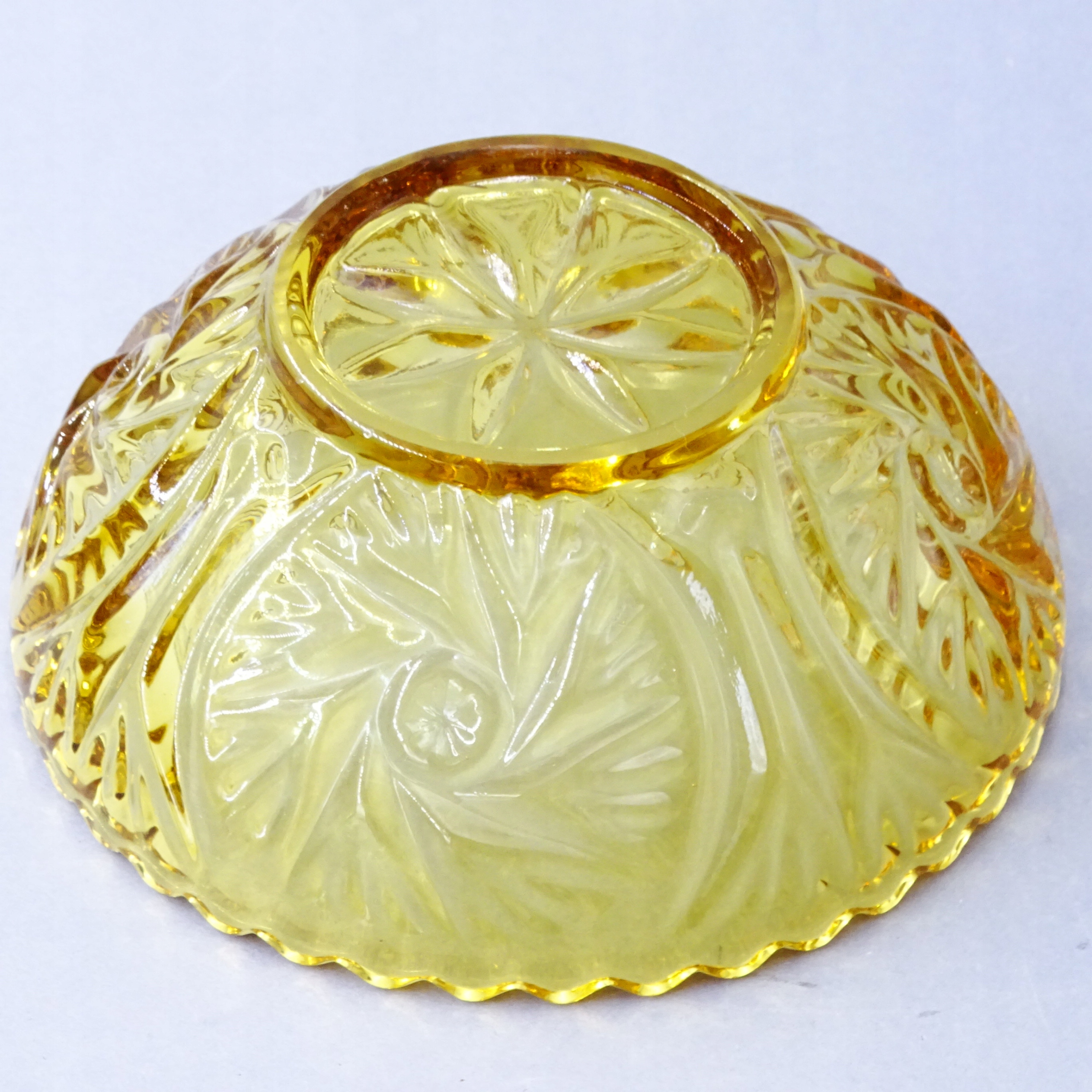 Piękna miseczka z barwionego w masie, prasowanego szkła.