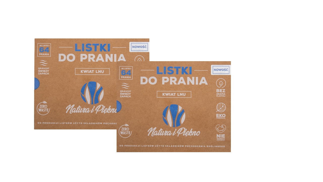 Listki piorące Natura i Piękno to innowacyjny, ekologiczny detergent do prania. Pierze efektywnie w każdej temperaturze i pozostawia delikatny zapach kwiatu lnu na ubraniach. Zastępuje środek piorący i płyn do płukania. Usuwa plamy, zajmuje minimum miejsca w łazience. Doskonały na wyjazdy. Nie zawiera fosforanów, parabenów, plastiku.