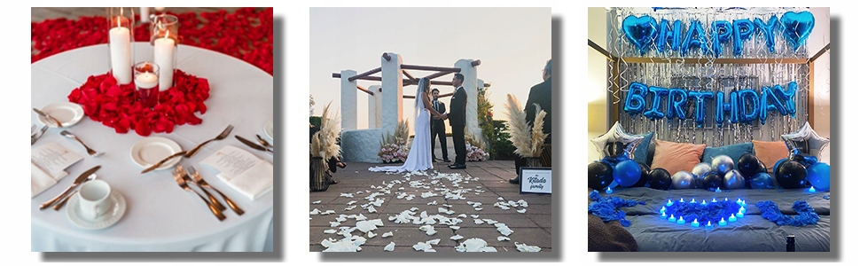 Te płatki róż są idealne na romantyczne noce. Możesz ozdobić scenę różnymi kształtami, takimi jak kształty serc, literami. Możesz rozsypać te płatki na podłodze, łóżku, stole, korytarzu itp. Wyglądają niezwykle realistycznie, tworząc romantyczną atmosferę dla ukochanej osoby dzięki tym płatkom róż.