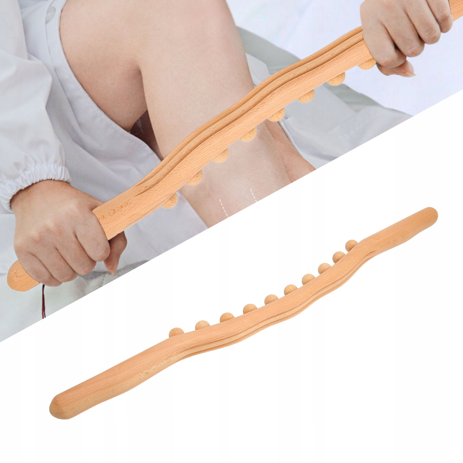 ➡️Uchwyt do masażu:Uchwyt falisty, wygodny i antypoślizgowy, uchwyt do masażu w kształcie fali, wygodny uchwyt i antypoślizgowa, zaokrąglona główka na obu końcach może wskazywać masaż. Twarda tekstura, weź materiał we właściwy sposób, oryginalna produkcja drewna, jeden kawałek listwy, bez oleju, bez farby, bez wosku.