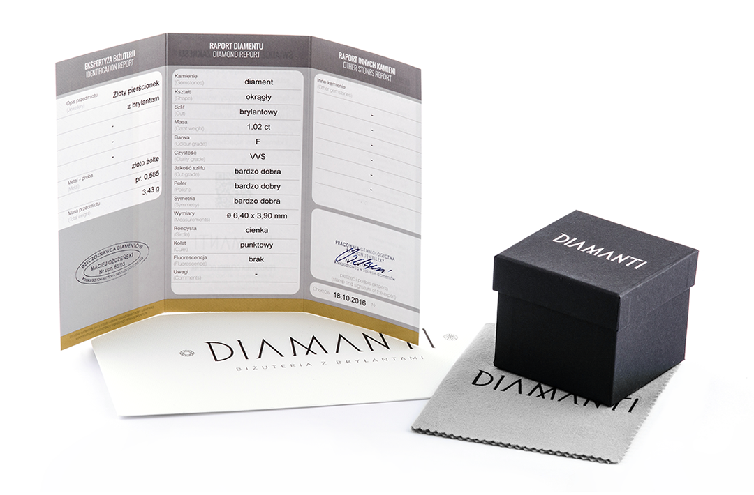 Do każdego wyrobu dołączamy certyfikat autentyczności, wystawiony przez dyplomowanego rzeczoznawcę międzynarodowego laboratorium gemmologicznego IGI.