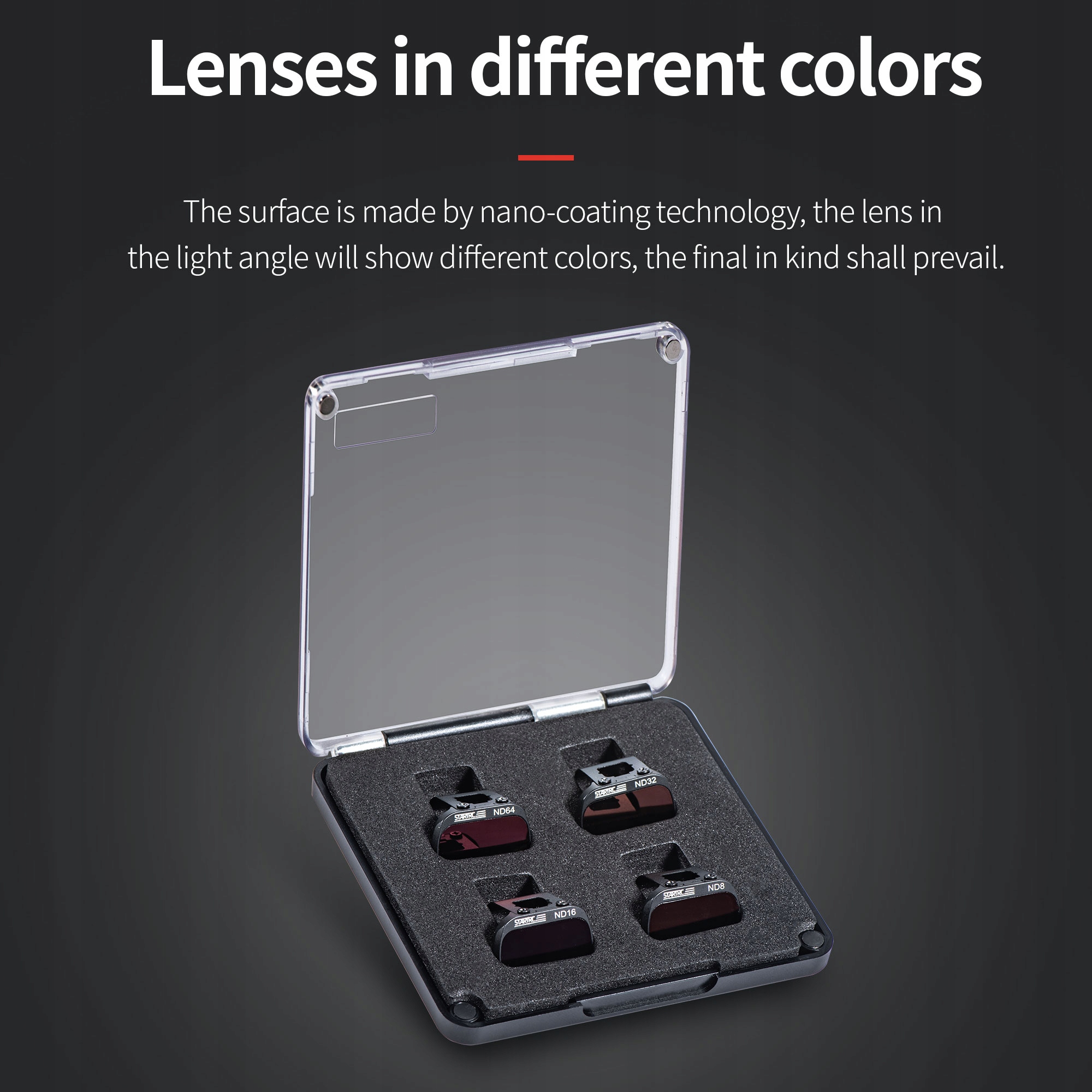 LEKKI: ten zestaw filtrów ND jest wykonany z lekkiego tworzywa sztucznego i szkła z technologią wielowarstwowego powlekania dla dodatkowej ochrony i zwiększonej funkcjonalności. Jego indywidualna waga to zaledwie 1g, co nie wpływa na lot drona i nie pozwala na osadzanie się kropel wody czy oleju na powierzchni obiektywu.