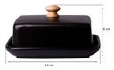 Maselniczka OMAGO to coś więcej niż zwykły pojemnik – to elegancki element nakrycia stołu. Jej nowoczesna, porcelanowa konstrukcja w czerni dodaje klasy każdej aranżacji, czyniąc codzienne śniadania i kolacje jeszcze bardziej stylowymi. Dzięki solidnej pokrywce masło zachowuje swoją świeżość i naturalny smak przez dłuższy czas.