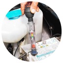 Zanurz końcówkę ssącą areometru w elektrolicie, ściśnij i zwolnij gruszkę, aby napełnić cylinder pomiarowy.