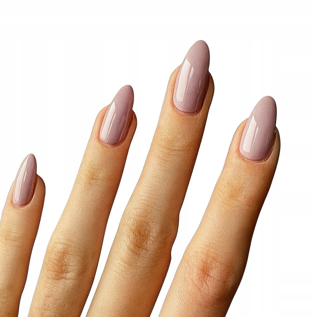✔️Wybrany model jest w pięknym błyszczącym beżowym kolorze. Paznokcie w kształcie migdała.