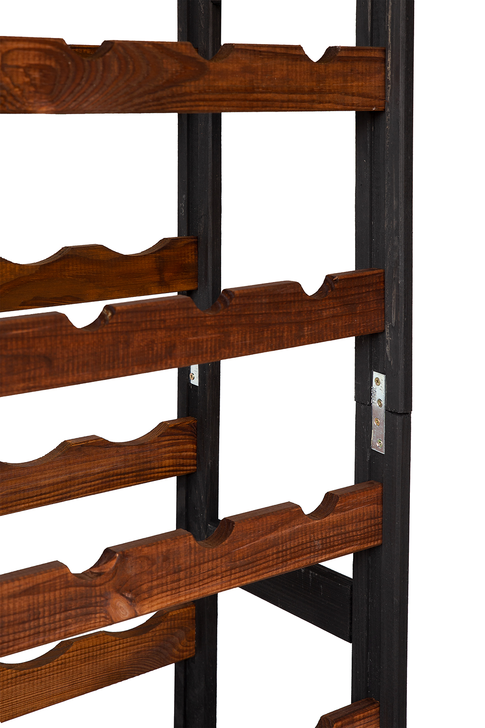 Стеллаж соединяется с помощью специальных креплений, что дает нам возможность создать один большой книжный шкаф, который будет вмещать 77 бутылок или два меньших на 42 и 35 бутылок, которые вы можете установить отдельно . Высота стеллажа на 42 бутылки - 91 см