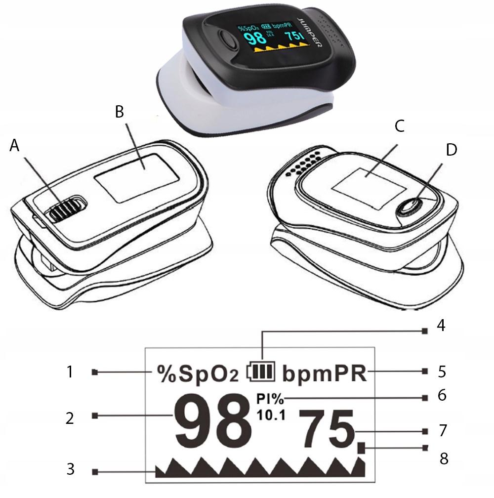 Nasycenie krwi tętniczej tlenem w normalnym ludzkim ciele wynosi 98%. Nasycenie tlenem jest ważnym wskaźnikiem stanu tlenu w organizmie człowieka. W ogólnie rzecz biorąc, normalne wartości nasycenia tlenem nie mogą być niższe niż 94%. Jeśli zmierzone wartości nasycenia tlenem są niższe niż 94%, uważa się za niewystarczającą ilość tlenu. Częstotliwość tętna to liczba uderzeń tętna na minutę. Ogólnie tętno każdego człowieka wynosi od 60 do 90 uderzeń na minutę. Wskaźnik perfuzji (PI) zwykle odzwierciedla stan perfuzji kończyny badanego pacjenta i pokazuje również precyzję wykrywania instrumentu; to znaczy, badanie nadal może być wykonywane nawet w warunkach niskiej lub słabej perfuzji. PI normalnego organizmu ludzkiego wynosi 3% lub większy.