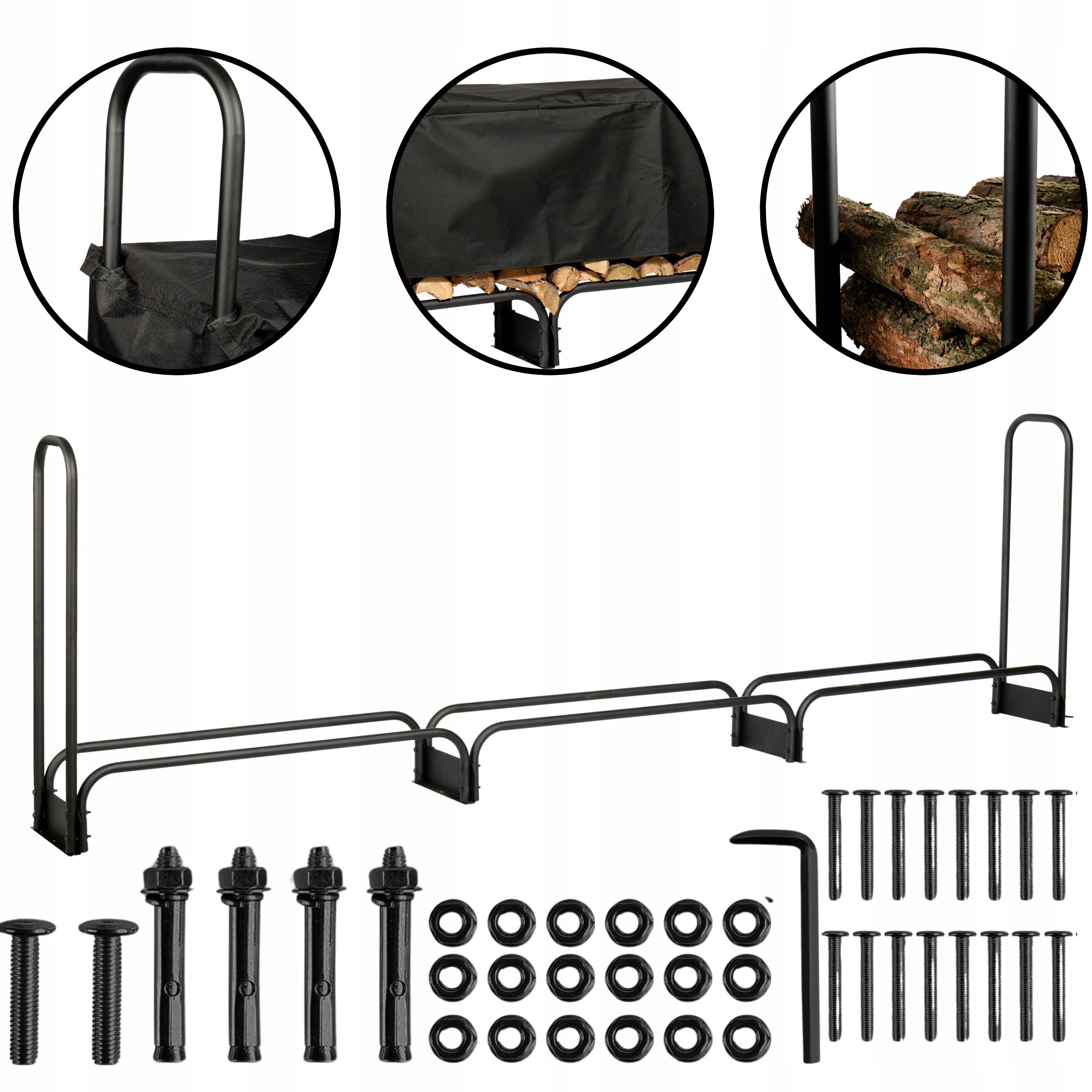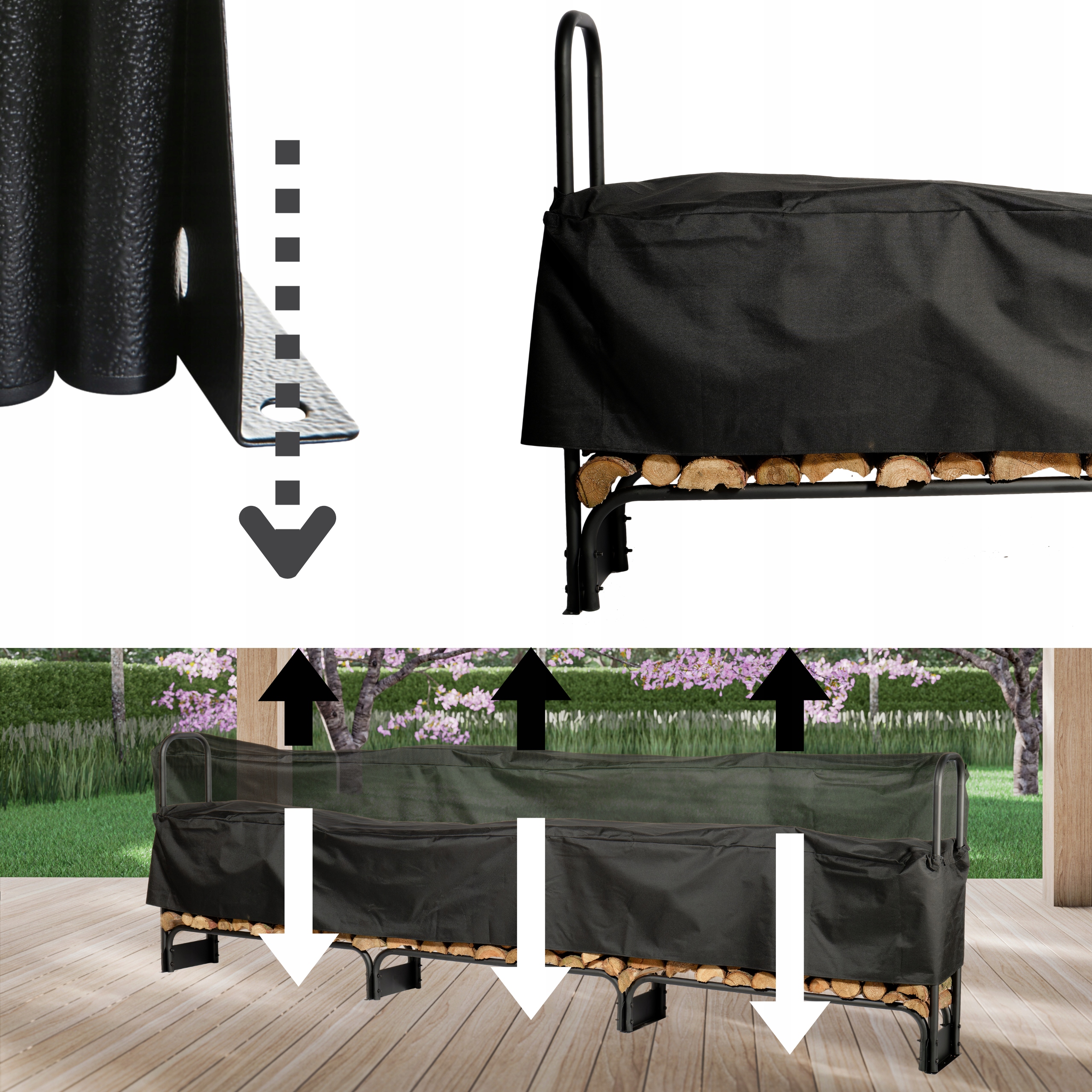 PLANDEKA W ZESTAWIE - Stojak jest wykonany z wytrzymałej tkaniny Oxford 600D, która jest odporna na pęknięcia i zmiany temperatury. Posiada również podwyższone dno, chroniące drewno przed wilgocią i ułatwiające układanie.