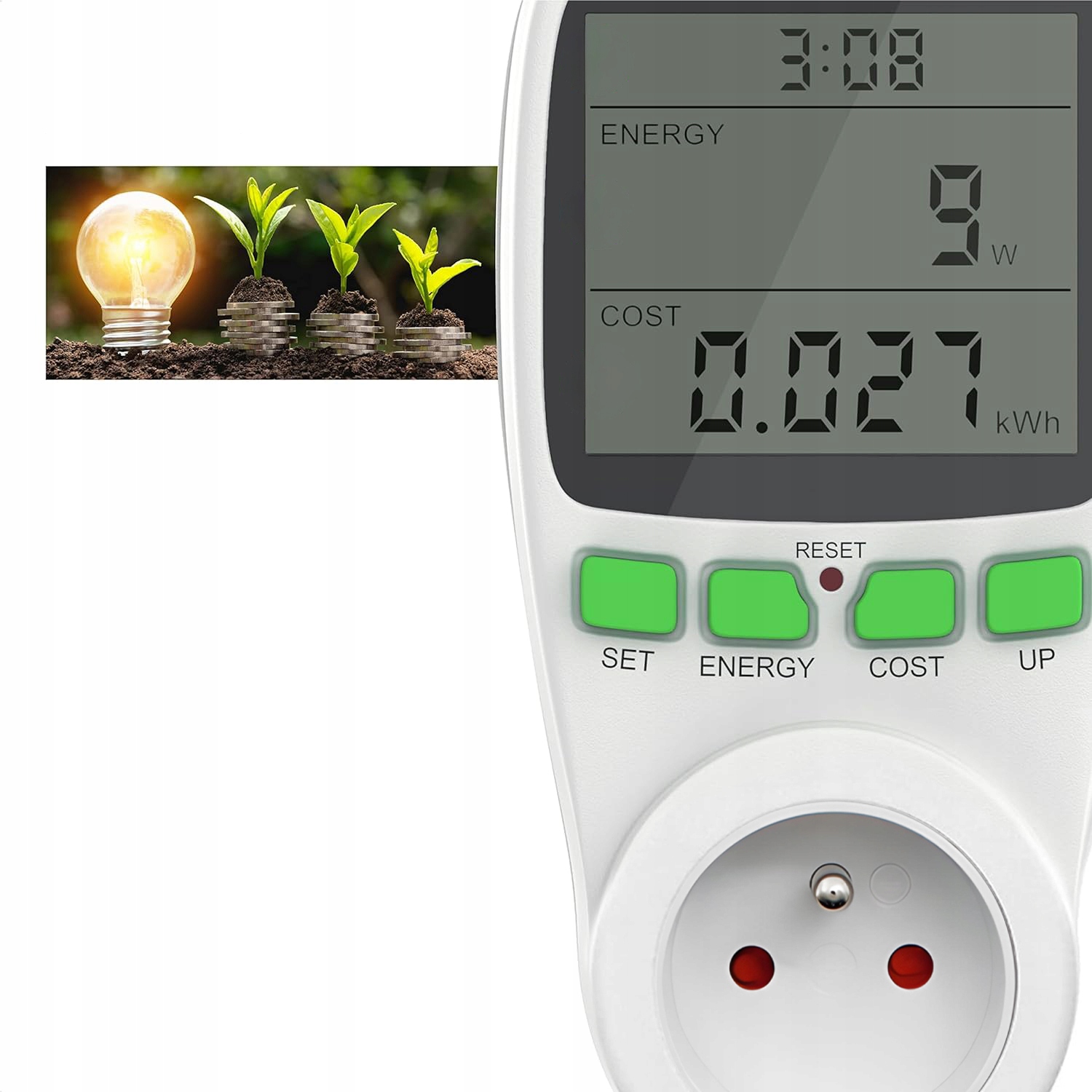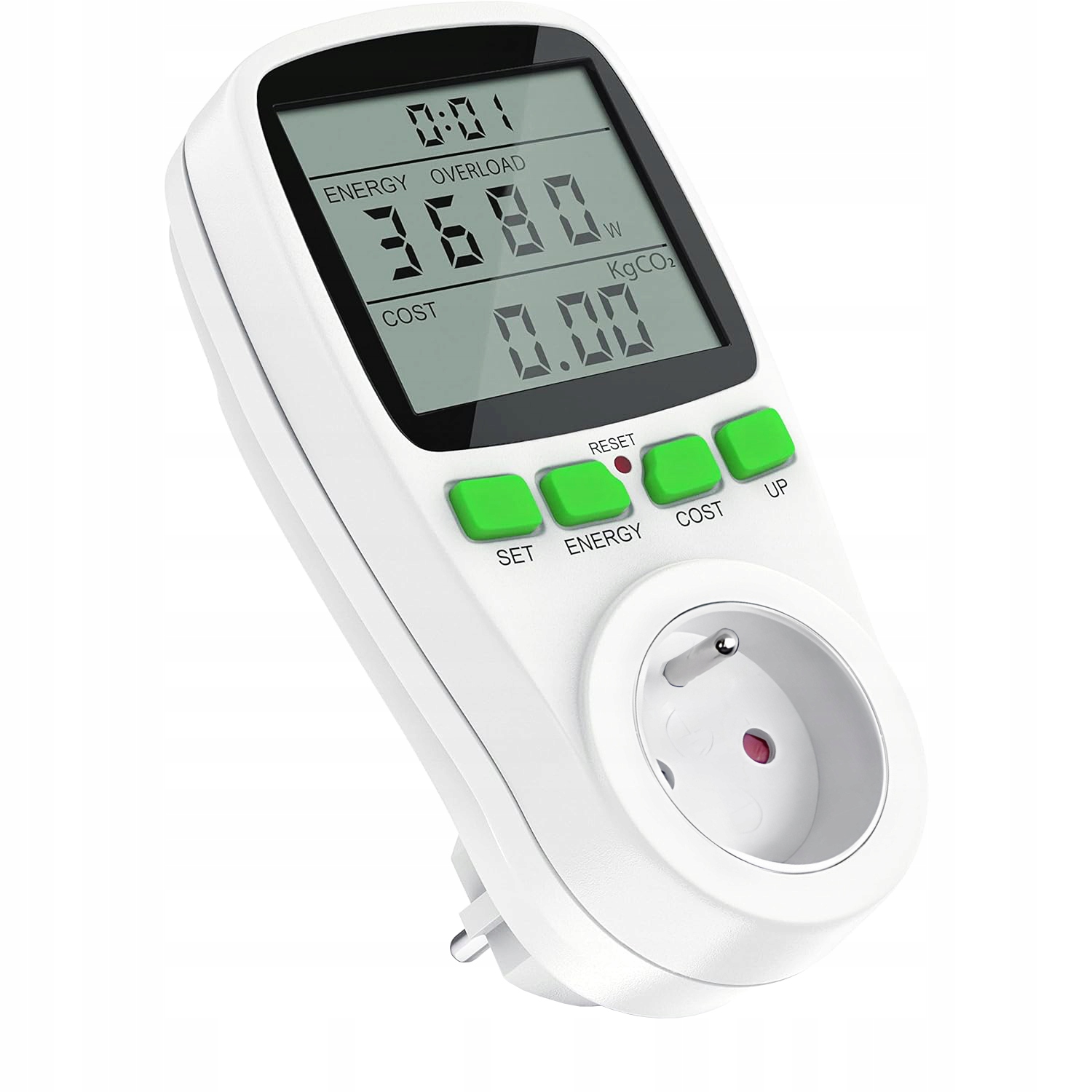Wystarczy podłączyć miernik do gniazdka, ustawić taryfę i podłączyć urządzenie. Wszystkie niezbędne informacje, takie jak zużycie energii, koszty, czas i inne parametry, są wyraźnie widoczne na ekranie, co sprawia, że kontrolowanie zużycia energii jest proste i wygodne.