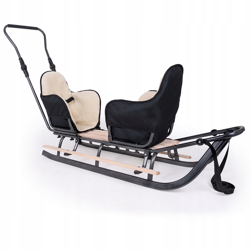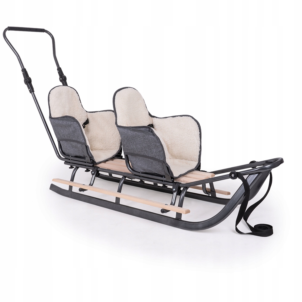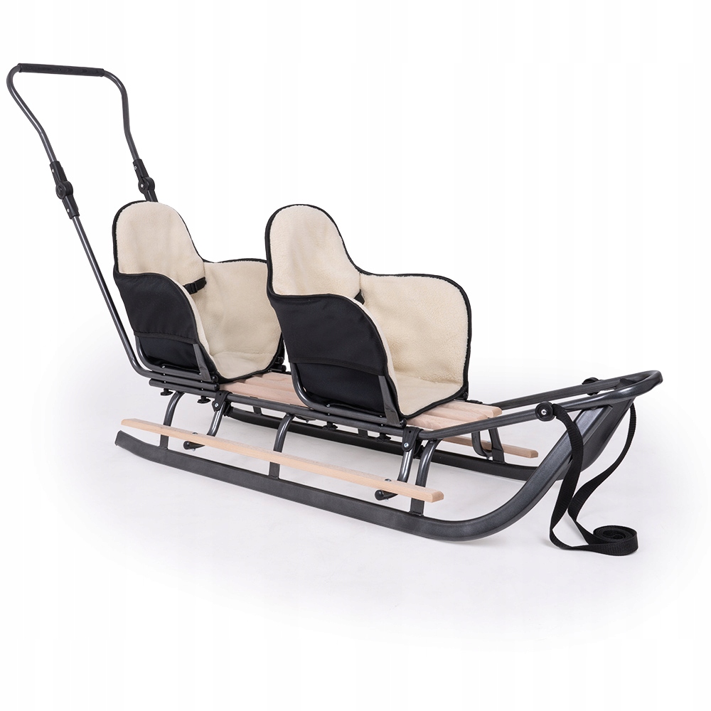 Polskie wielofunkcyjne sanki, wyposażone w pchacz, siedziska, ocieplacze i podnóżki model DUO Bliźniak na sezon 2024/2025 znakomicie sprawdzą się w śnieżne dni i zapewnią doskonały wypoczynek i zabawę Twojemu dziecku.