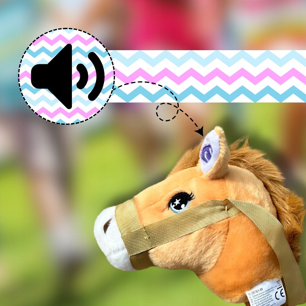 Nasza głowa konia jednorożca na kiju, po naciśnięciu przycisku na uchu emituje łagodny dźwięk galopowania i parskania, co pozwala na spokojną i kreatywną zabawę. Dzieci mogą wyobrażać sobie różne scenariusze i opowiadać fantastyczne historie, odkrywając swoją wyobraźnię i rozwijając umiejętności narracyjne.