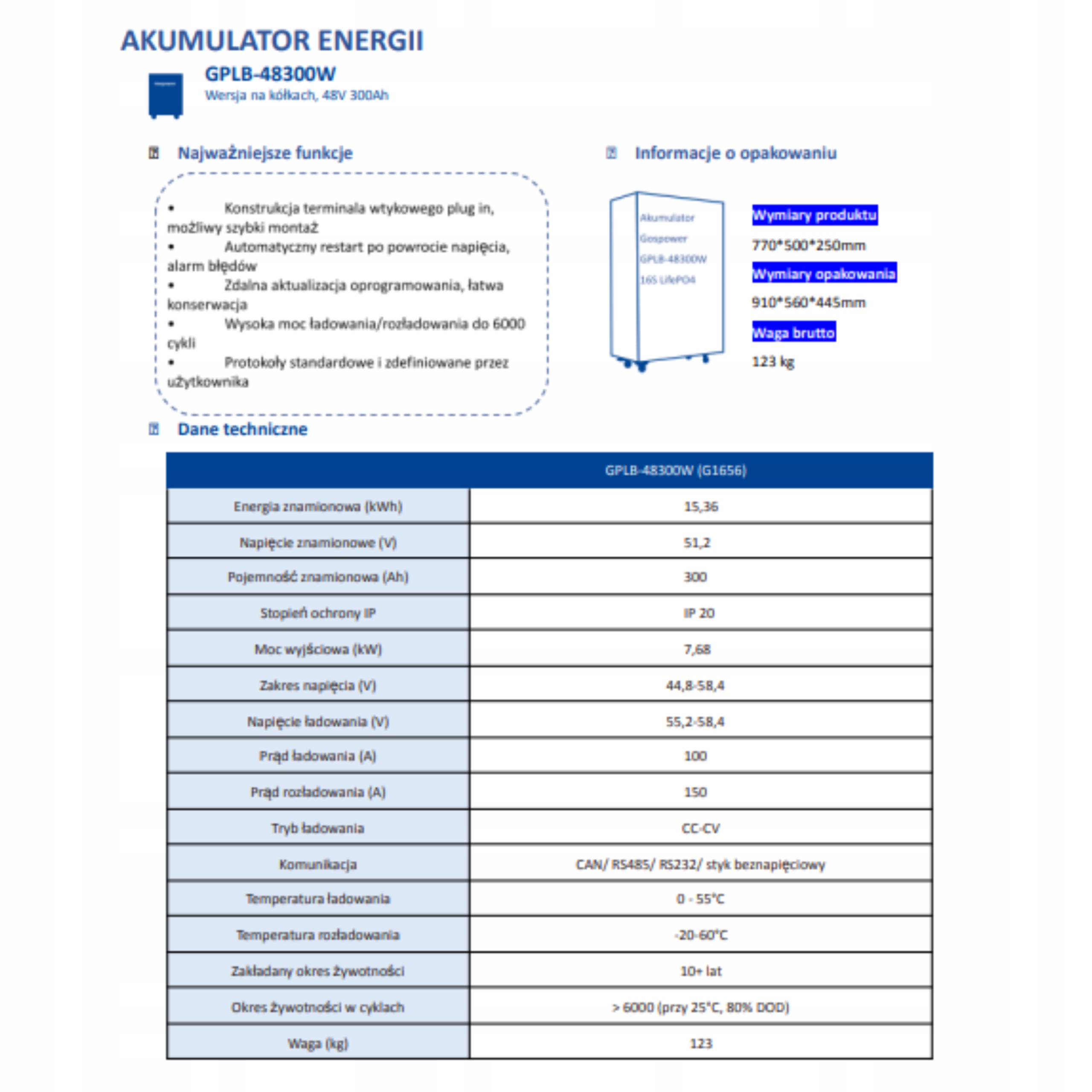 Z gwarancją na 10 lat i żywotnością ponad 6000 cykli, GPLB-48300W jest inwestycją na lata.