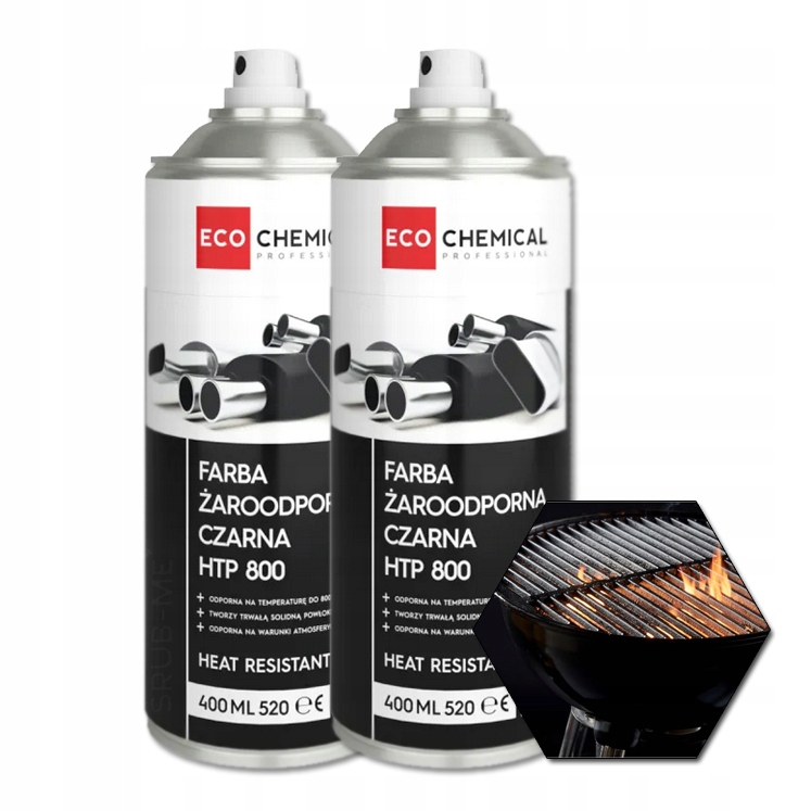 FARBA ŻAROODPORNA HTP 800 to szybkoschnąca farba żaroodporna na bazie silikonowej. Stosowana jest do lakierowania elementów narażonych na działanie wysokich temperatur w branży motoryzacyjnej. Lakier odporny jest na działanie środków chemicznych, warunków atmosferycznych i benzyny. Innowacyjna silikonowa formuła sprawia, że produkt schnie szybciej i jest termoutwardzalny. Farba o uniwersalnym czarnym kolorze RAL 9005. Tworzy trwałą powłokę odporną na temperaturę do 800⁰C.