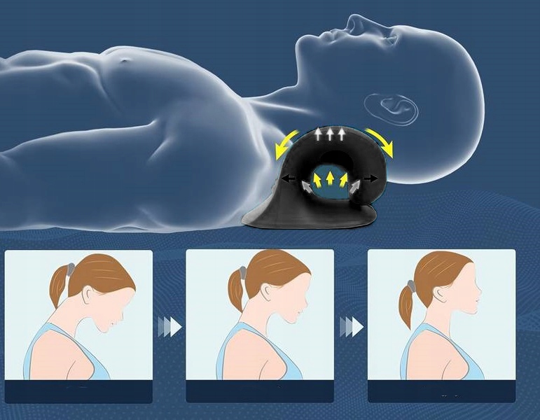 ✔️ Specjalnie zaprojektowany kształt naszej poduszki ma na celu odwzorować PRAWIDŁOWE, ANATOMICZNE ułożenie odcinka szyjnego kręgosłupa.