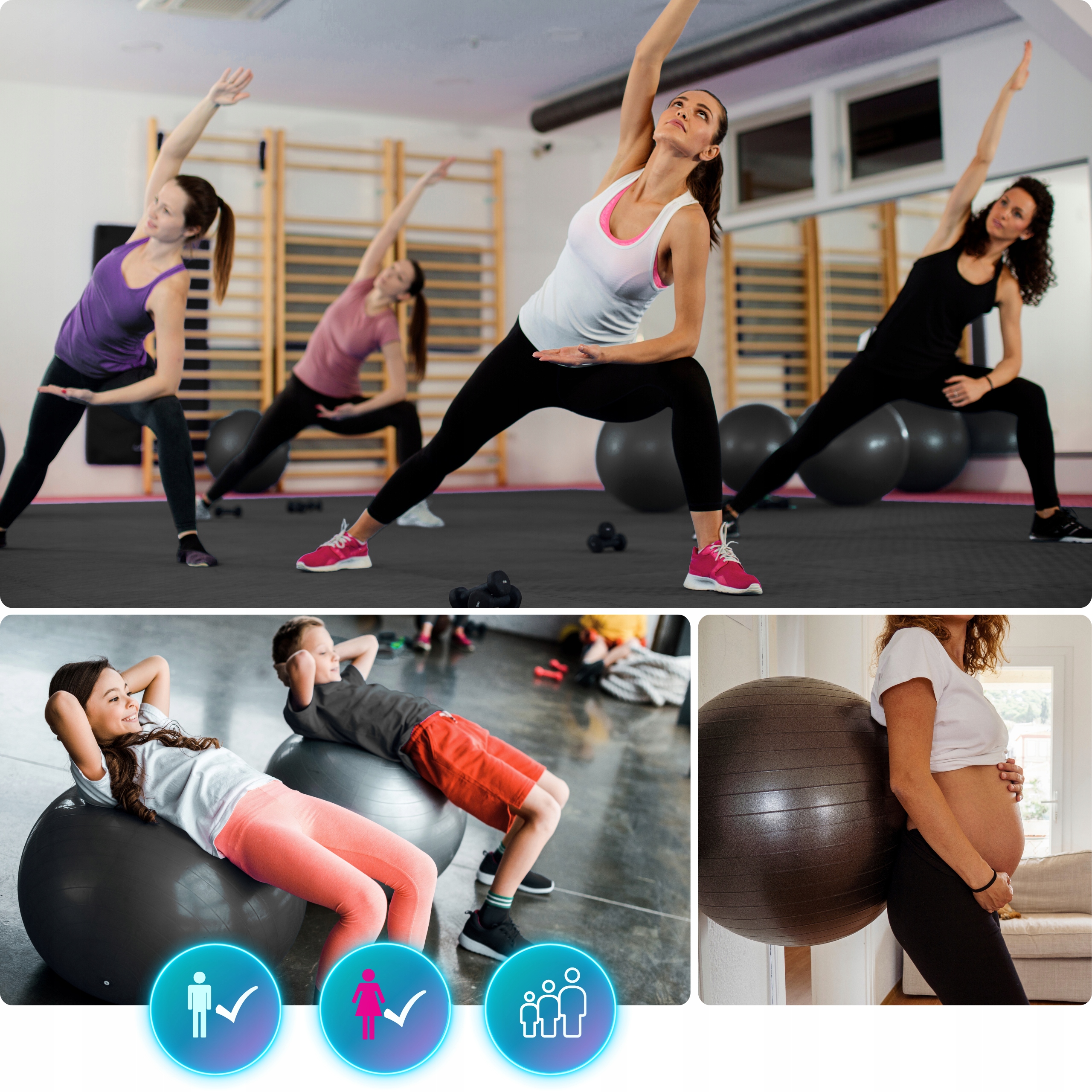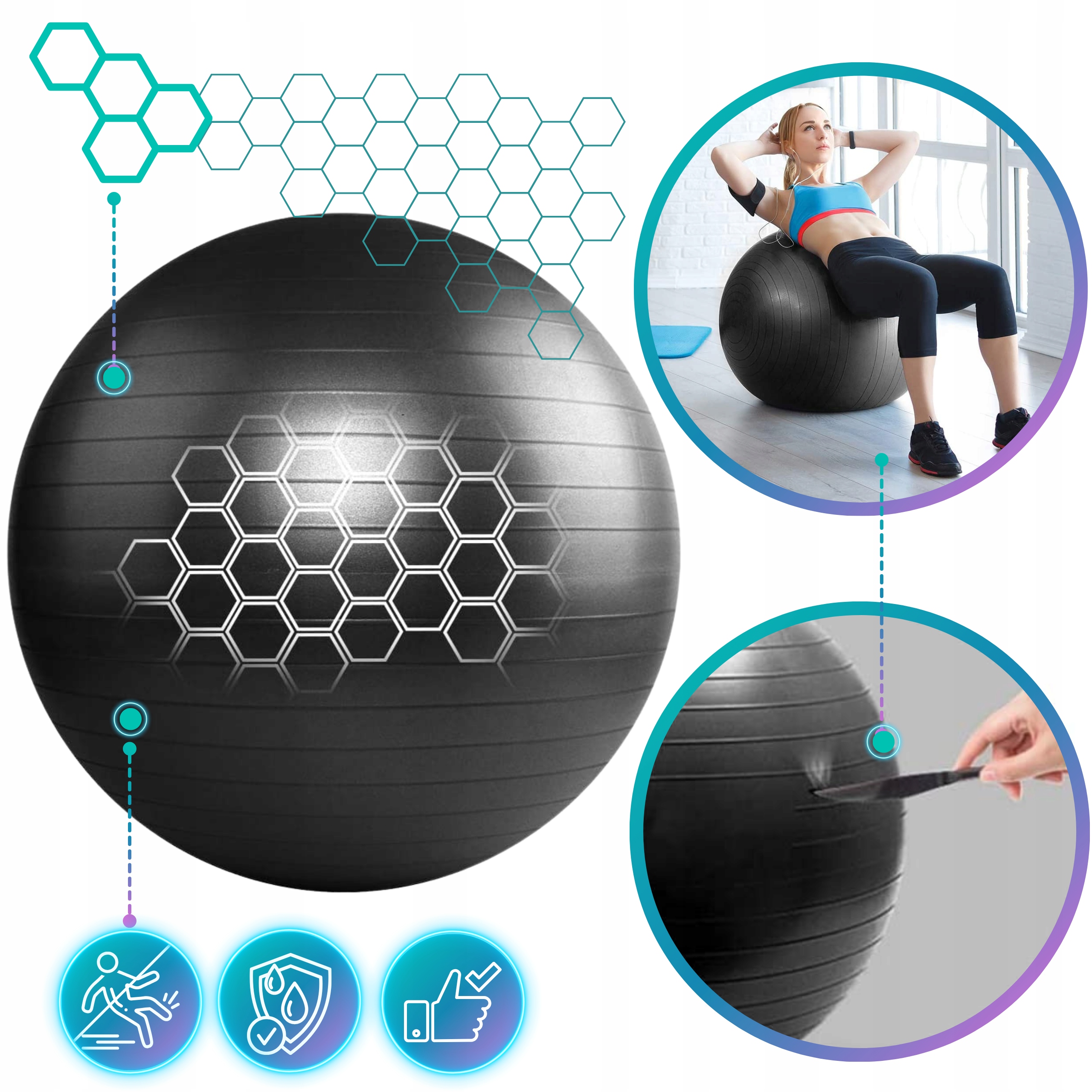 ✅ GYM BALL o wadze 1200g w kolorze CZARNYM/GRAFITOWYM ⚫matowym z lekkim połyskiem , zakres średnicy 55-75 cm