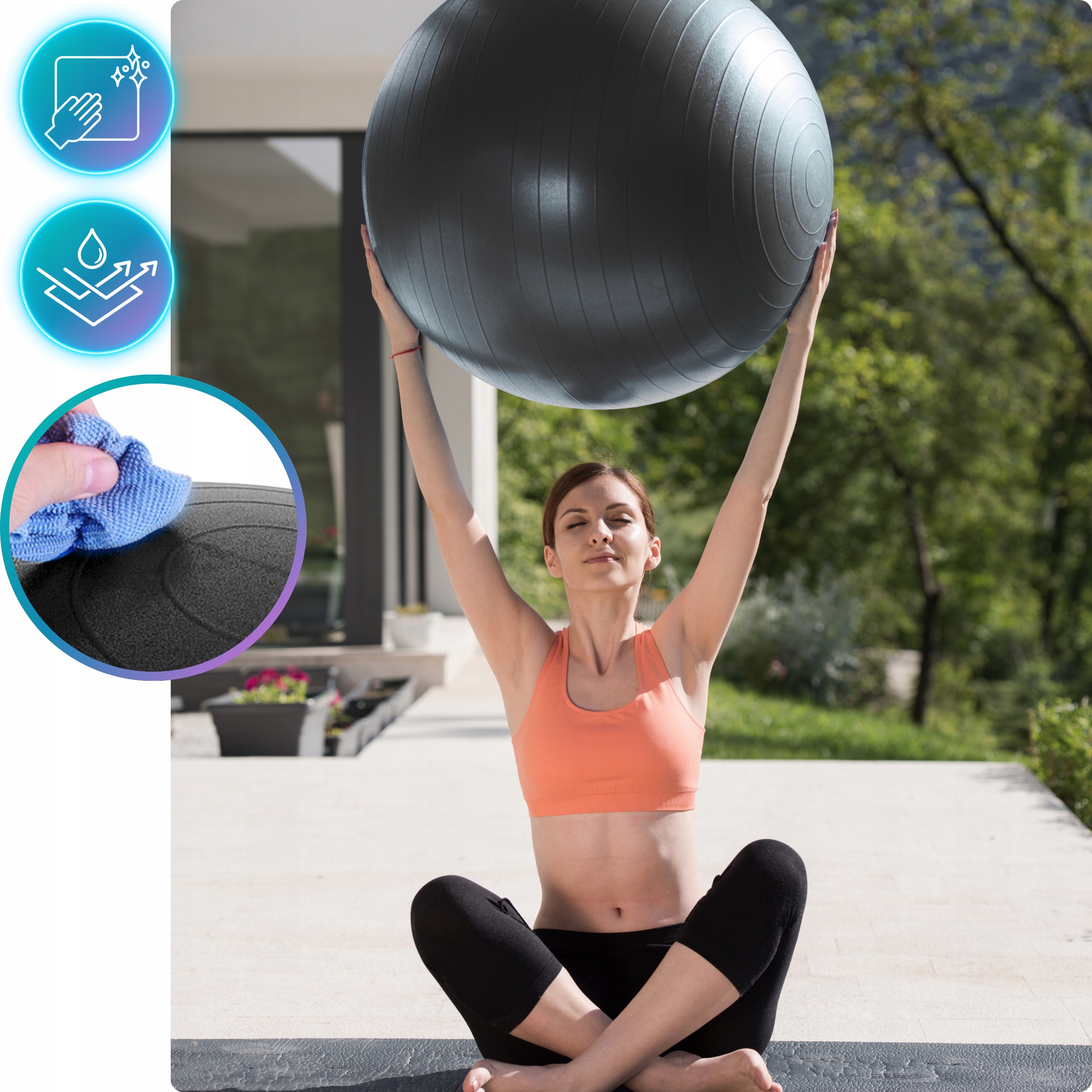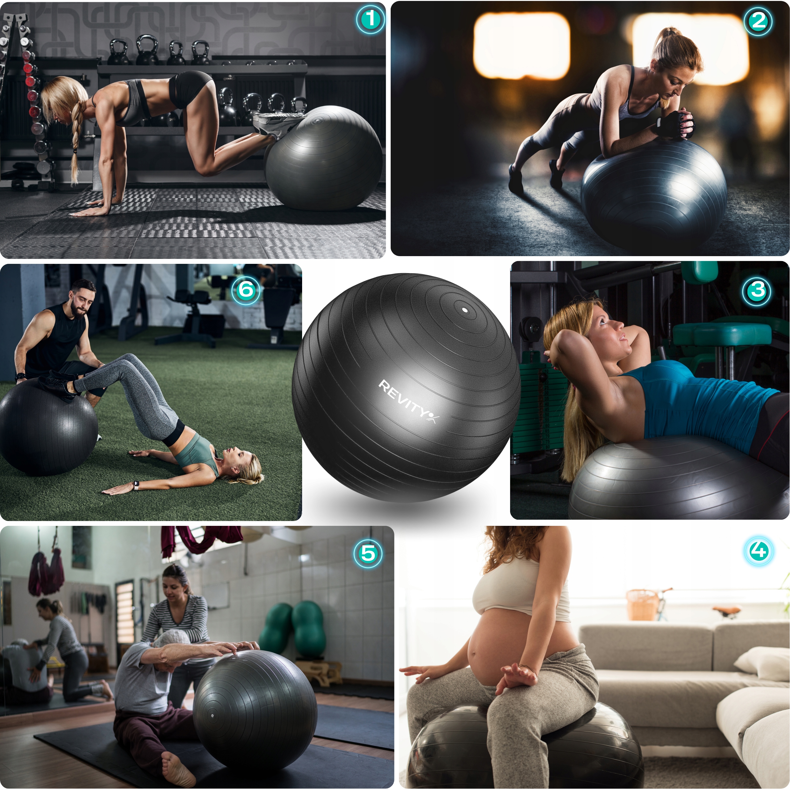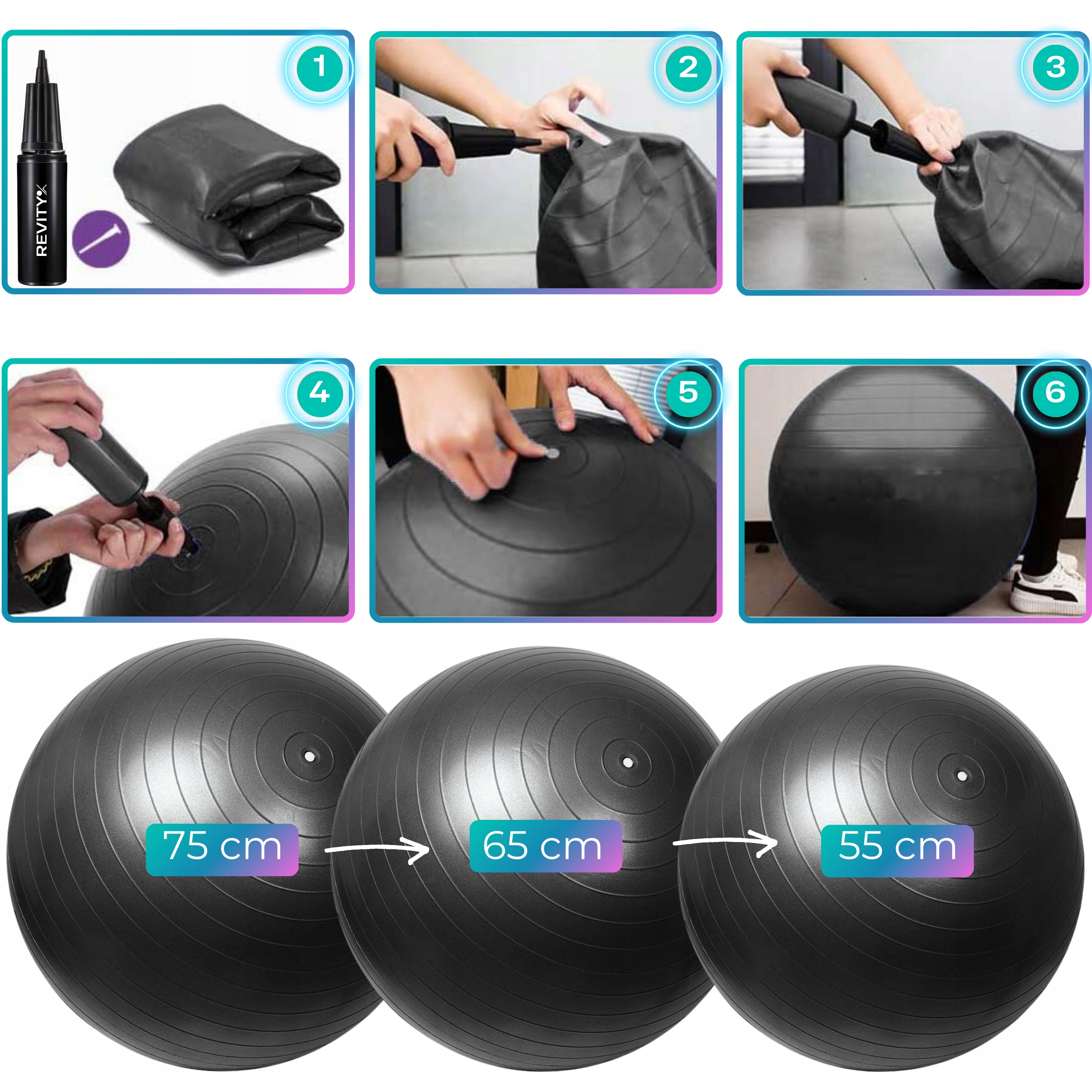 Piłka do ćwiczeń GYM BALL PRO marki REVITY to wysokiej jakości piłka gimnastyczna (szwajcarska), która jest świetnym produktem nie tylko w sporcie i rehabilitacji ale wspaniale odnajduje się również w życiu codziennym i zawodowym. Poniżej znajdziesz przykładowe ćwiczenia jakie możesz wykonać razem z piłką. Więcej znajdziesz w poradniku PDF, który jest częścią tej oferty.