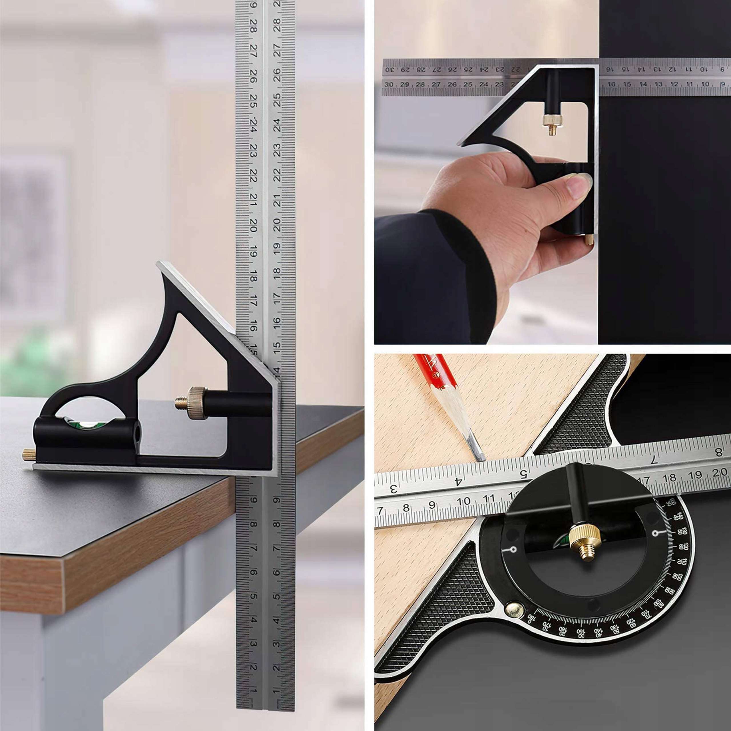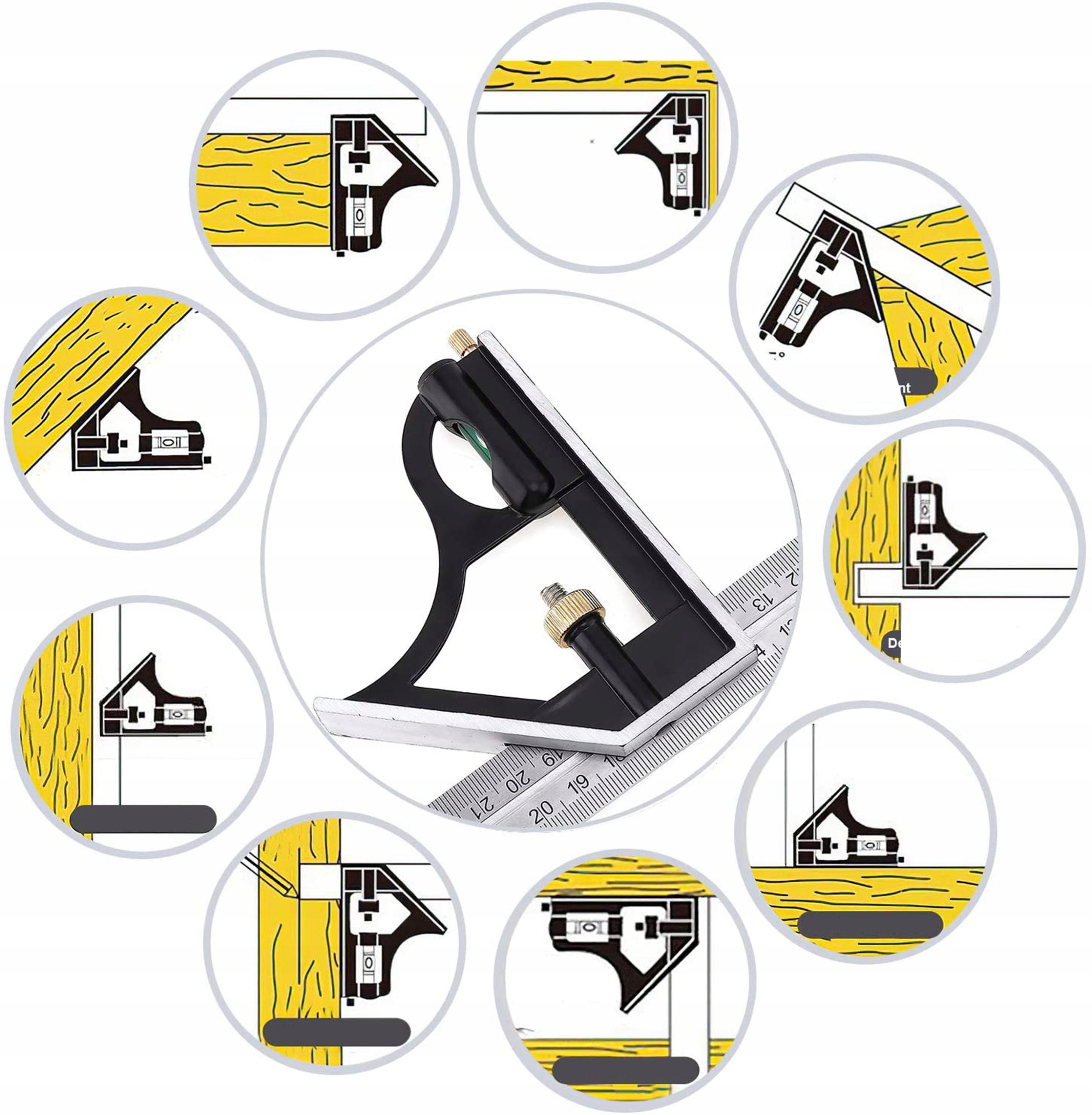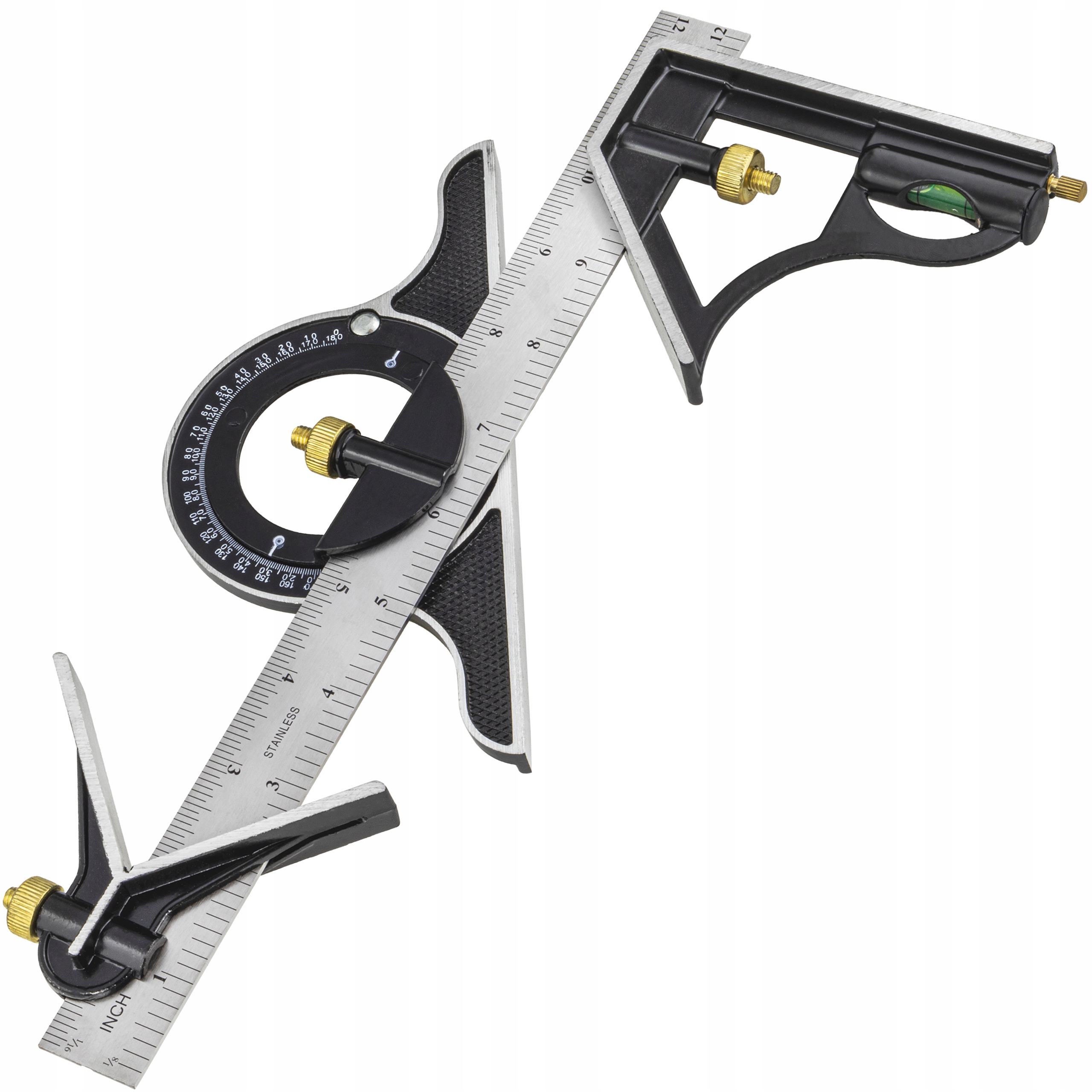 Kątownik wielofunkcyjny z kątownikiem centrującym. Czyni to zeń narzędzie bardzo użyteczne i przydatne przy wielu pracach. Posiada podziałkę ze skalą metryczną i imperialną (cale). W uchwycie znajduje się libelka.
