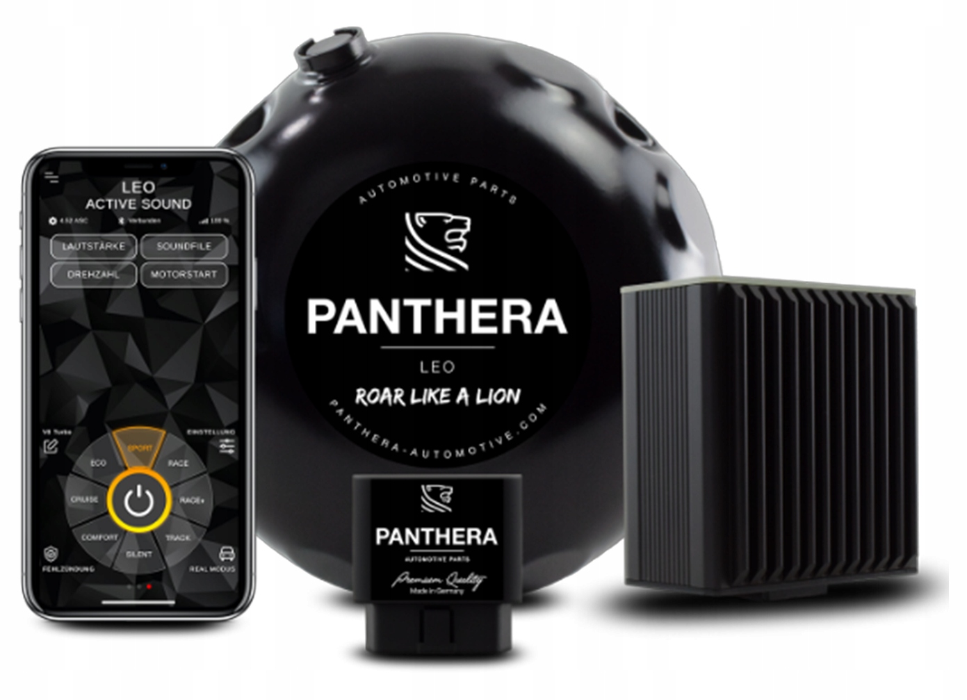 PANTHERA to system na który składa się przede wszystkim super mocny głośnik umieszczony w specjalnej konstrukcji wykonanej ze stopu tytanu oraz stali. Głośnik wydaje realistyczny i bardzo głośny dźwięk silnika V6/V8.