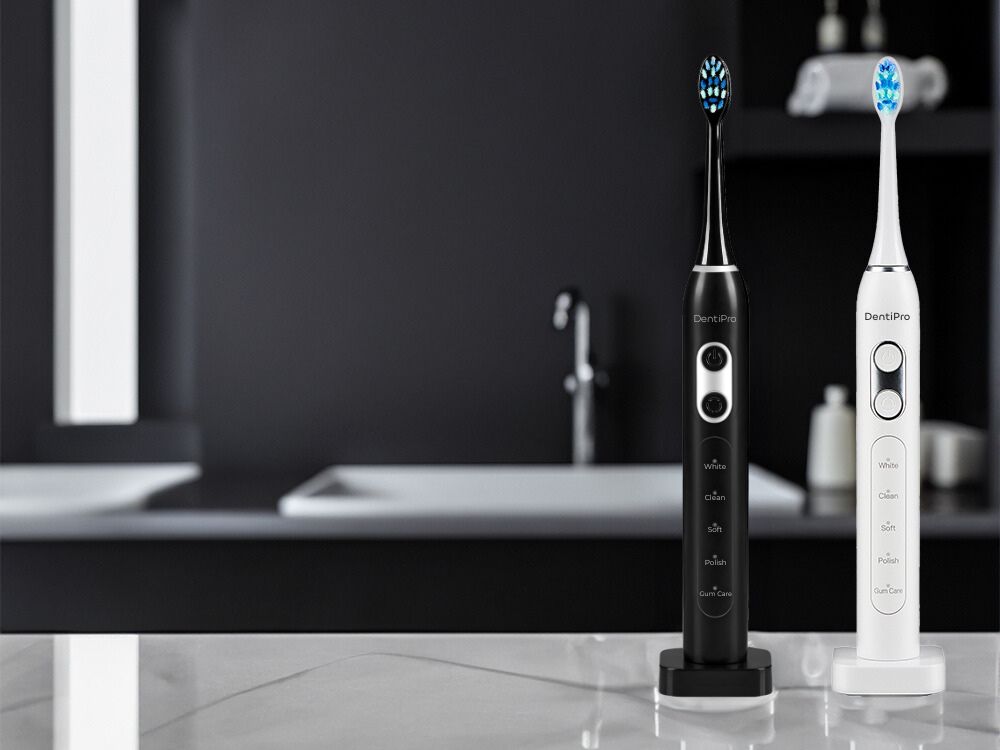 Звуковые щетки DentiPro более эффективны при удалении зубного налета зубной налет в отличие от ручной зубной щетки благодаря 90 000 вибраций в минуту. Они мягче на деснах, что снижает риск их повреждения и кровотечения. Встроенный таймер помогает поддерживать рекомендуемое время чистки и расширенные функции, такие как 5 режимы очистки на выбор, повысить эффективность чистки зубов. Звуковые щетки они лучше достигают труднодоступных мест, поэтому лучше чистят зубы по сравнению с ручные щетки.