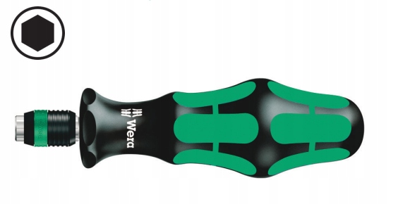 Uchwyt Rapidaptor z mechanizmem szybkomocującym przeznaczony jest bitów ¼'' produkowanych zgodnie z normą DIN ISO 1173-C 6,3 + E 6,3 (seria Wera 1 i 4).