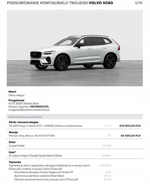 Jeżeli posiada Pan / Pani własną konfiguracje ze strony Volvocars proszę o jej przesłanie do wyceny na poniższy adres mailowy: