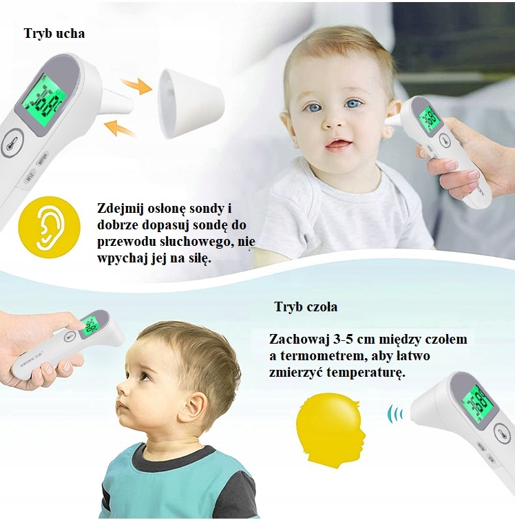 ➡️ ucho- aby zmierzyć temperaturę w tym miejscu należy ściągnąć plastikową nakładkę z górnej części urządzenia