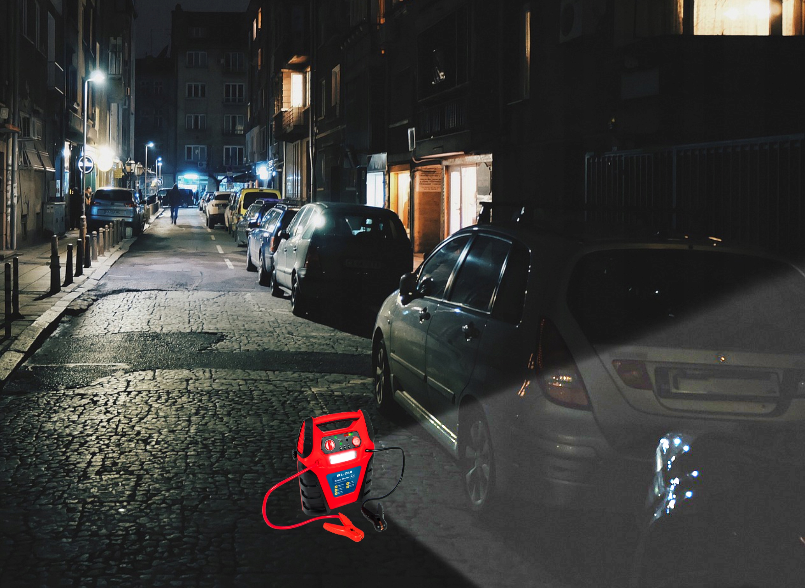 Jump Starter wyposażony w mocną latarkę składającą się z piętnastu diod LED. Latarka, umiejscowiona z przodu kompresora, doskonale sprawdza się podczas pompowania opony w ciemności, umożliwiając łatwe podłączenie końcówki ciśnieniowej do wentylu.