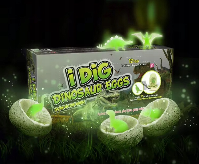 Wydobycie dinozaurów z gipsowych jaj to nie koniec zabawy! Figurki, które znajdują się w jajach świecą w ciemności!