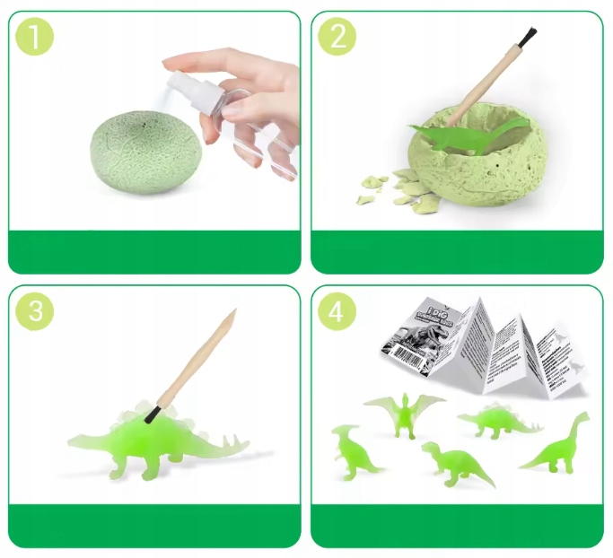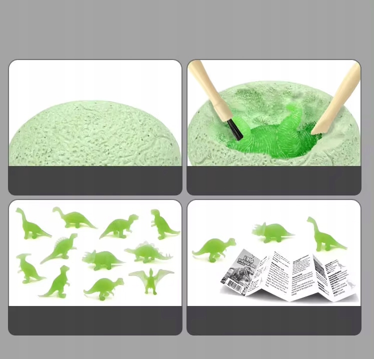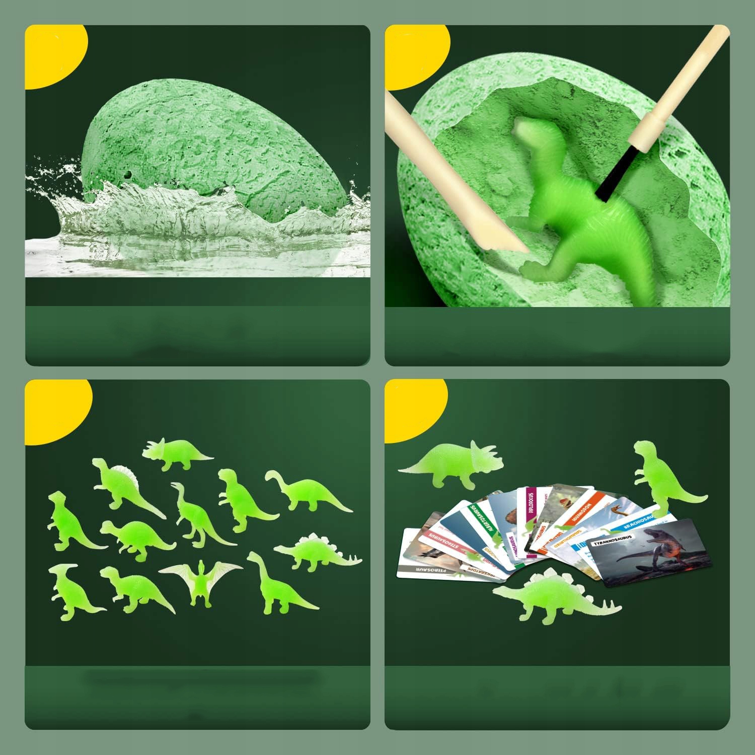Zestaw zawiera 12 jaj wykonanych z gipsu, które są realistyczną repliką jaj dinozaurów. Dzięki temu dzieci mogą poczuć się jak prawdziwi badacze odkrywający skarby z przeszłości.