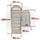 Ciepły śpiwór turystyczny o długości 220 centymetrów wykonany został z delikatnych, komfortowych i oddychających materiałów, które bardzo dobrze zatrzymują ciepło. Bawełna, którą wyłożono wnętrze śpiwora, nadaje się do prania ręcznego, więc można utrzymać ją w przyjaznej dla skóry czystości. Kołdra z kapturem zapewni ci komfort termiczny nawet w temperaturach od - 3 do 15 stopni Celsjusza.