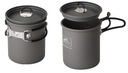Wyposażony w praktyczną pokrywkę, która przyspiesza gotowanie i chroni zawartość przed zanieczyszczeniami. Składane uchwyty umożliwiają łatwe przechowywanie i transport, a także zapewniają bezpieczne trzymanie podczas użytkowania. Dzięki średnicy pozwalającej zmieścić litrową butelkę, kubek ten jest niezwykle funkcjonalny i oszczędza miejsce w plecaku.