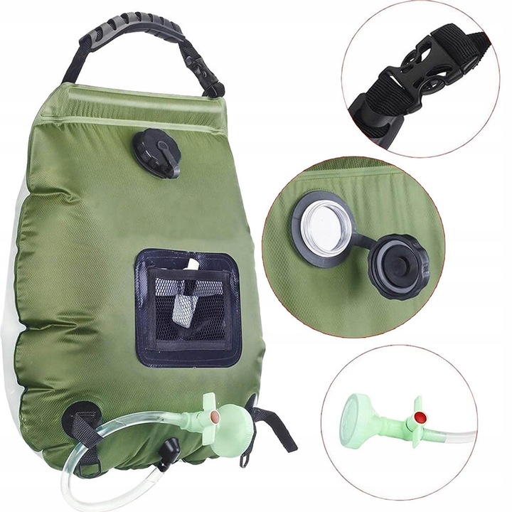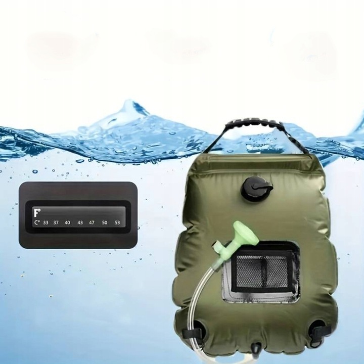 Dzięki użyciu promieni słonecznych podgrzewa wodę nawet do ok. 50 stopni! Łatwy w użyciu, posiada wytrzymały uchwyt, który pozwala zawiesić prysznic w dowolnym miejscu! Rurka zakończona jest sitkiem!