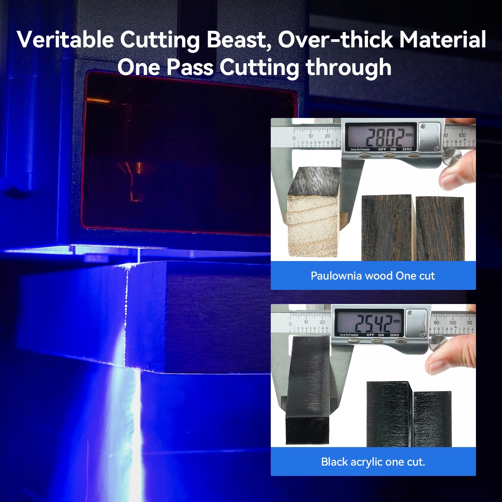 1. Bestialska wydajność: Wyposażony w unikalny laser o najwyższej mocy na rynku, rzeczywista moc optyczna lasera może osiągnąć 70-77 W, dzięki czemu jest bardziej odpowiedni do szybkiego przetwarzania i głębokiego cięcia. Obsługuje różnorodne materiały, zwiększając wydajność pracy.