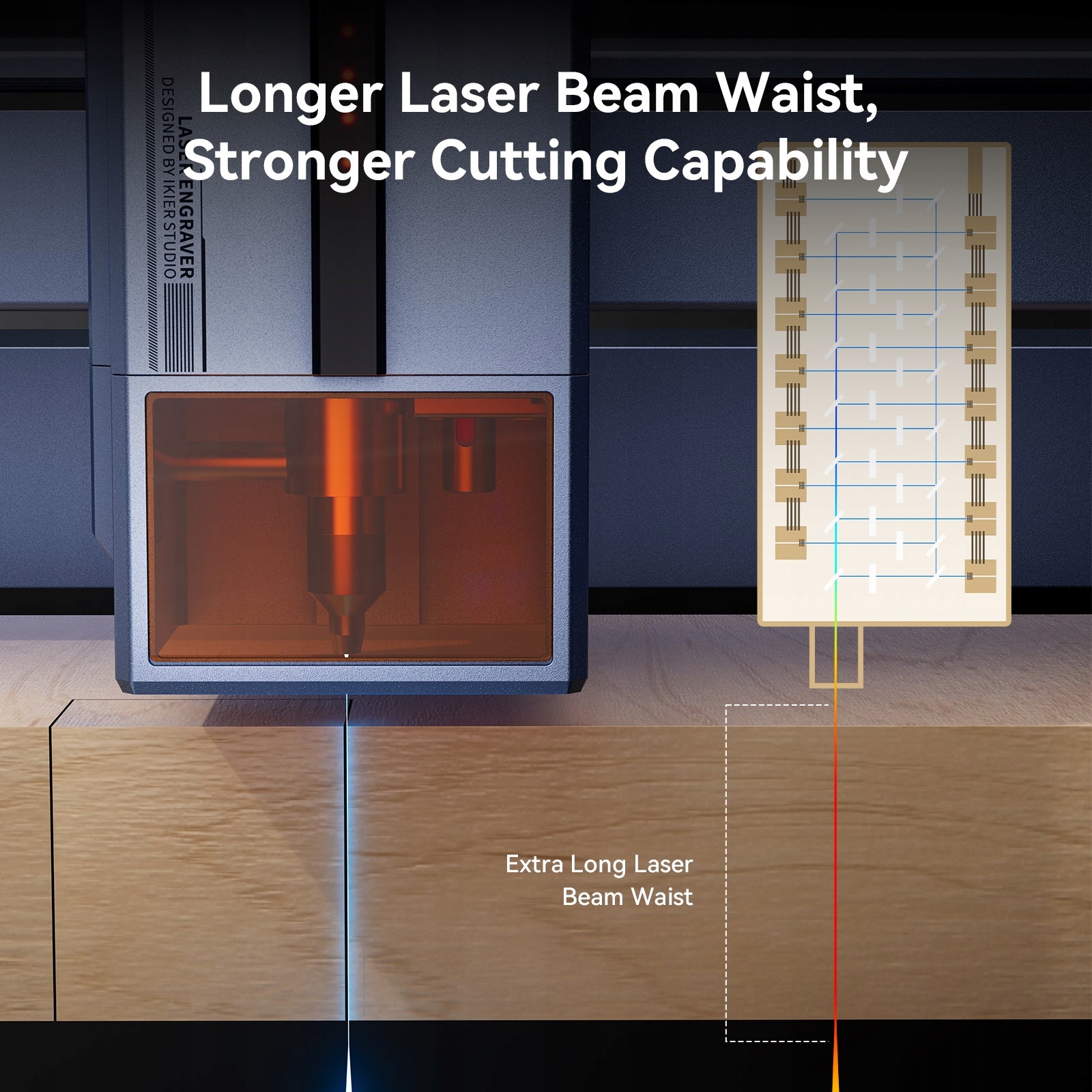 7. Precyzja cięcia: IKIER K1 PRO MAX 70W wykorzystuje lasery o mocy 14*6W, aby uzyskać laser o dużej mocy 70-77W. Jego wydajność cięcia jest o 90-100% większa niż w przypadku istniejących na rynku maszyn o mocy 40 W, które są w stanie przeciąć sklejkę o grubości 25 mm w jednym przejściu, co odpowiada wydajności cięcia laserów CO2 o mocy 120-150 W.