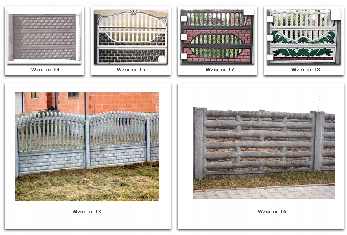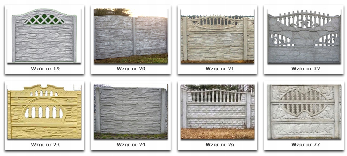 Cena na aukcji dotyczy każdego wzoru składającego się z trzech płyt i słupka (ogrodzenie 1,5 metra wysokości) - nie ma znaczenia który wzór Państwo wybierzecie.