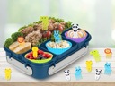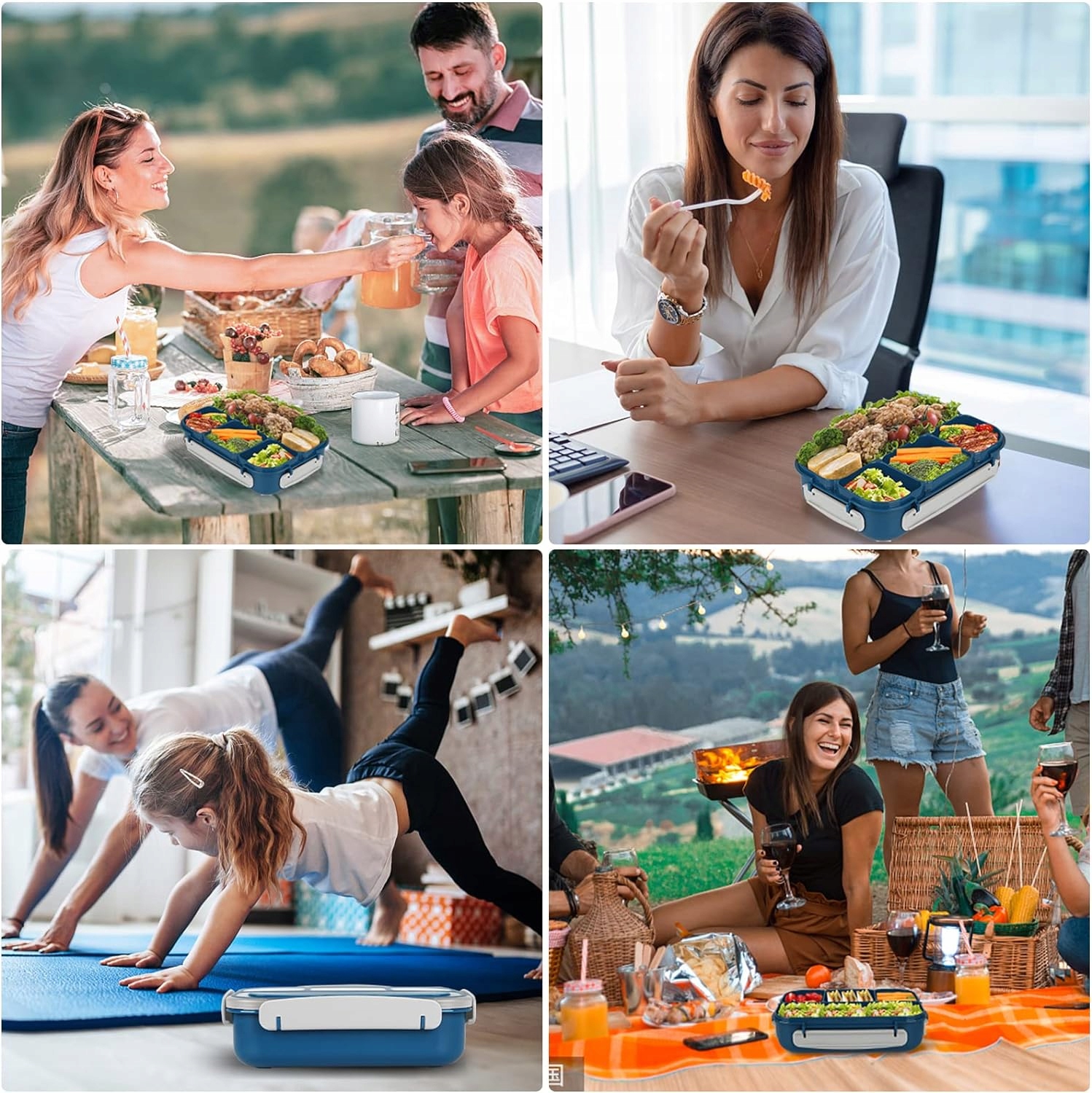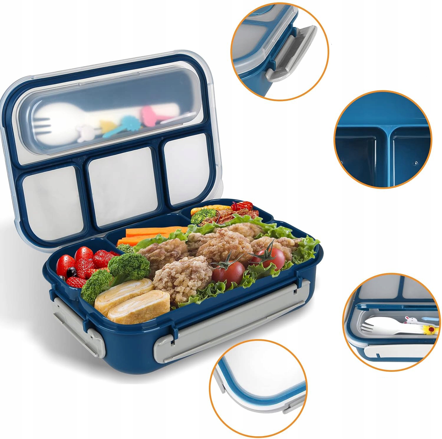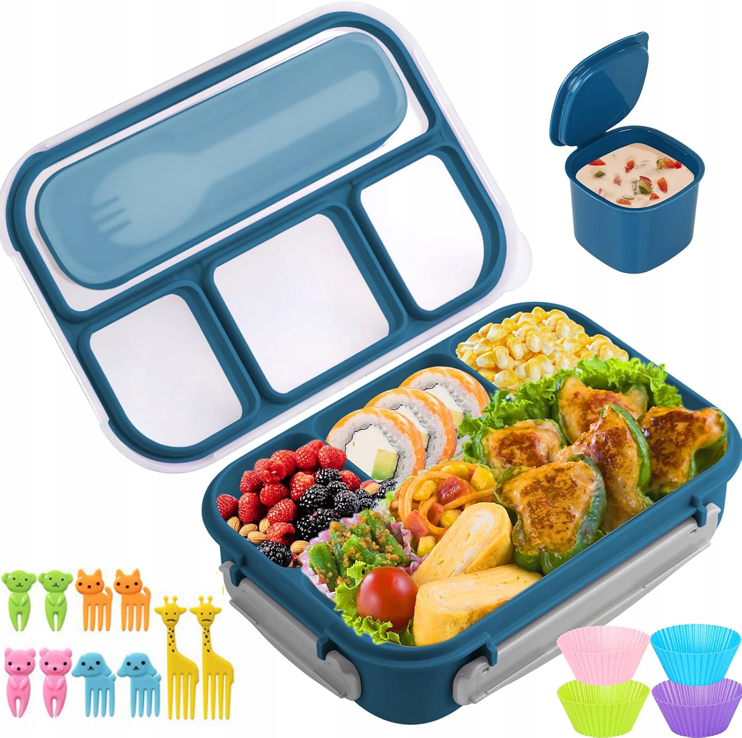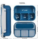 Коробка бенто имеет размеры 8,9*6,4*2,6 дюйма, 1300 мл и 4 отсека