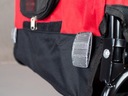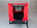 Wózek jest wyposażony w dwa stabilne koła o średnicy 20 cali. Solidna i lekka konstrukcja sprawia, że wózek jest atrakcyjnym środkiem transportu, umożliwiającym zabranie ze sobą na wycieczki nawet domowego pupila. Zalecana maksymalna waga wynosi 40 kg. Wymiary zewnętrzne wózka: długość - 79,5 cm (+ ok. 70 cm dyszla) x szerokość - 60,5 cm x wysokość - 68 cm. Waga wynosi 15 kg. Wewnętrzna przestrzeń ma wymiary 74,7 x 52,7 x 60 cm. Wózek jest wykonany w kolorze czerwono-czarnym.