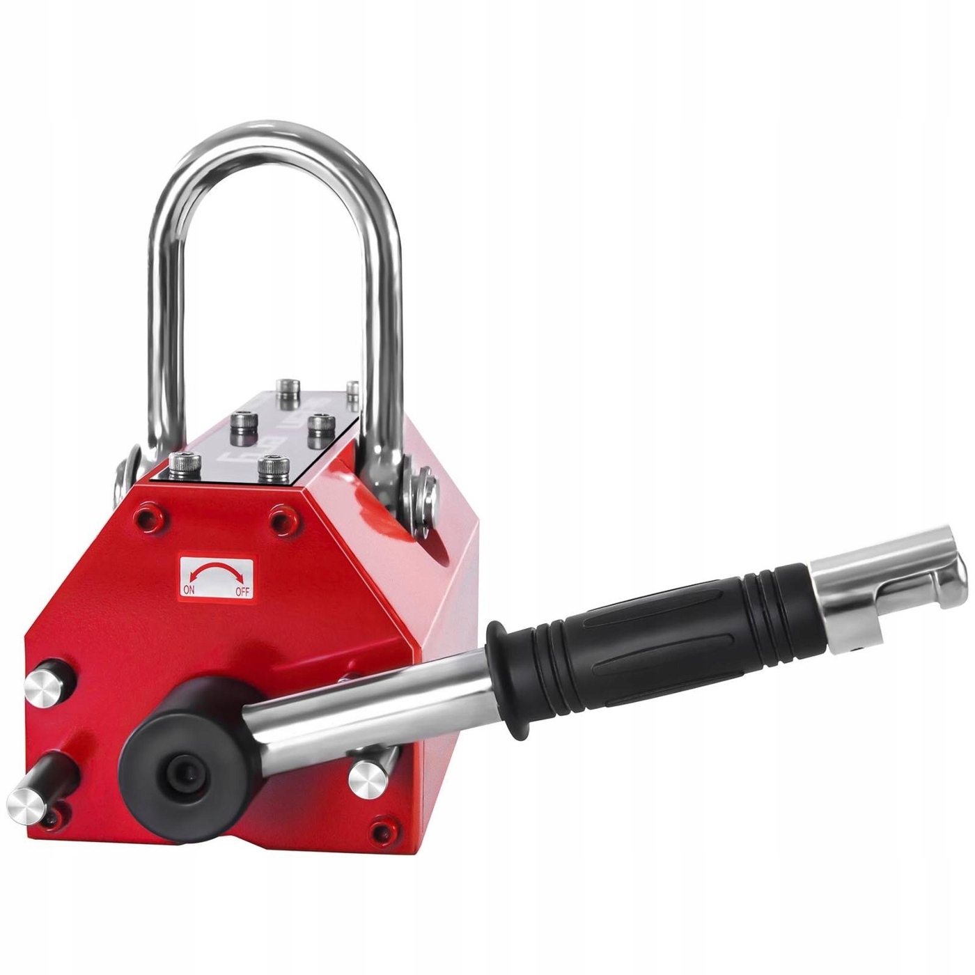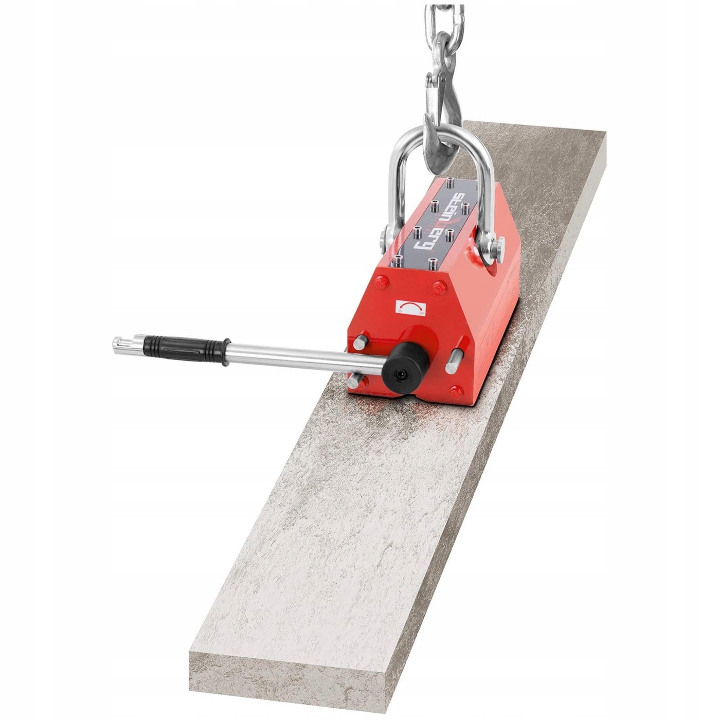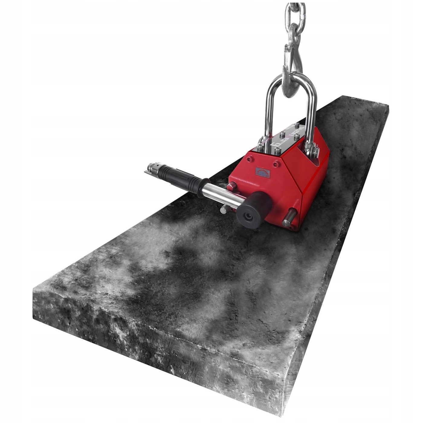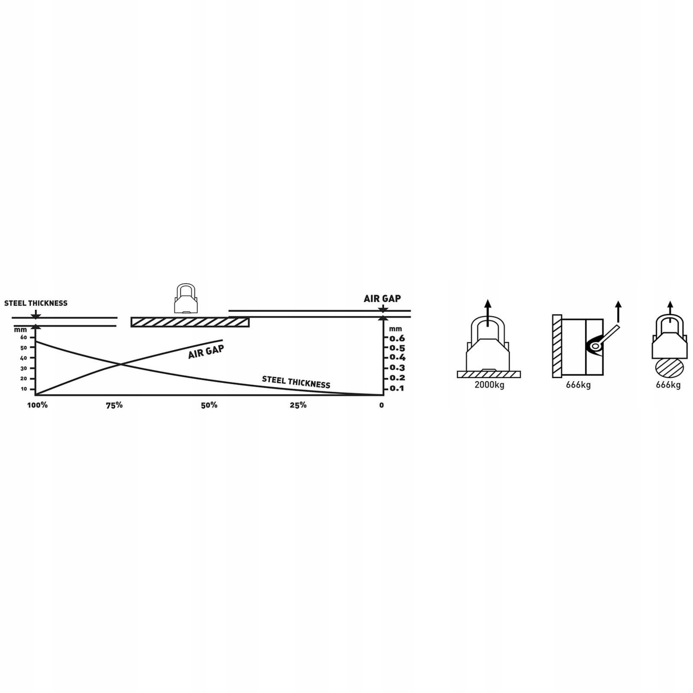 Siła udźwigu uchwytu magnetycznego wynosi 2000 kg. Taka nośność została zapewniona dzięki użyciu silnego magnesu neodymowego. Co więcej, urządzenie posiada wysokie obciążenie zrywające (aż 6000 kg), więc praca za jego pomocą jest pewna i bezpieczna. Pamiętaj jednak, by nigdy nie przekraczać dopuszczalnego obciążenia!