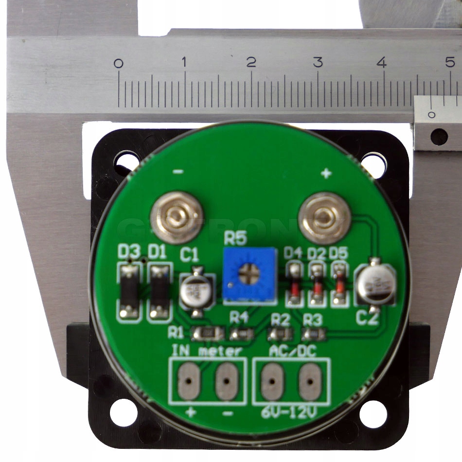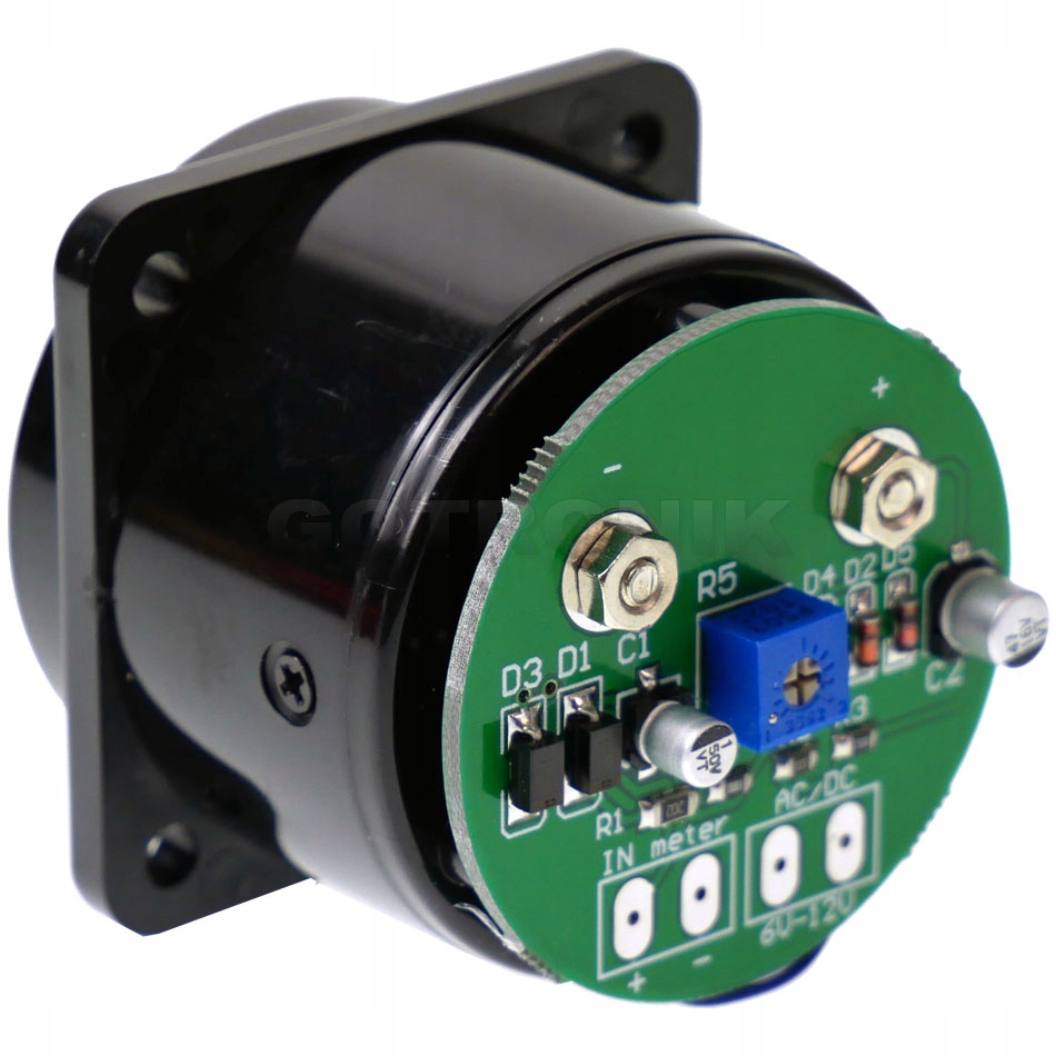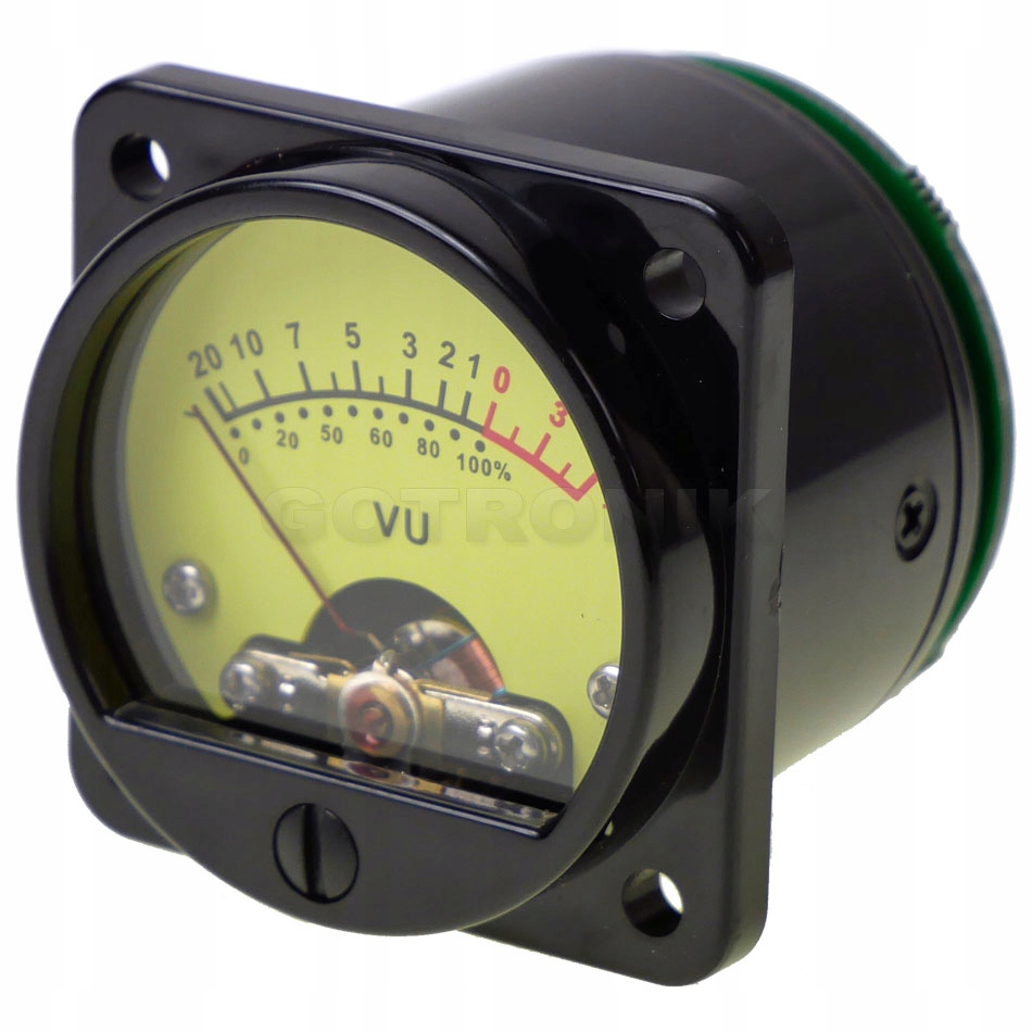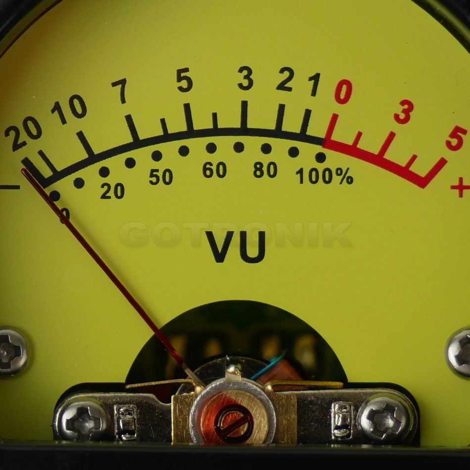 Analogowy miernik typu "VU meter" czyli miernik wysterowania poziomu audio. VU meter to analogowy przyrząd służący do pomiaru wysterowania sygnału audio, który może uatrakcyjnić wygląd wzmacniacza lub zestawu audio. Wraz ze zmianą sygnału zmienia się wychylenie wskazówki miernika. Mały pobór prądu przy napięciu zasilania od 6V do 12V. Jako zasilacza można użyć transformator lub inne źródło napięcia stałego (miernik może być zasilany zarówno napięciem stałym jak i zmiennym - do zasilania podświetlenia żarówkowego). Podświetlenie miernika za pomocą żarówki wolframowej dodatkowo nadaje specyficzny wygląd retro urządzenia, co również poprawi wrażenia wizualne podczas budowy lub modyfikacji zestawu audio. Wbudowany potencjometr służy do regulacji czułości urządzenia na każdym kanale z osobna. Na płytce znajdują się miejsca do dolutowania przewodów. Konstrukcja wykonana z wysokiej jakości elementów.