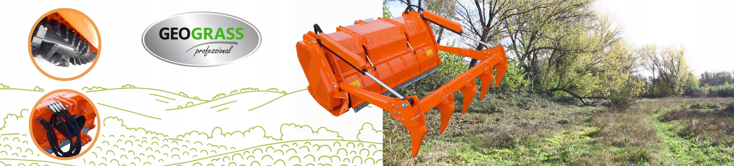 Mulczer leśny (karczownik) marki Geograss model 1JLS-220 to w pełni profesjonalna maszyna o bardzo masywnej budowie do karczowania pni drzew. Kierunek jazdy traktorem: do tyłu.