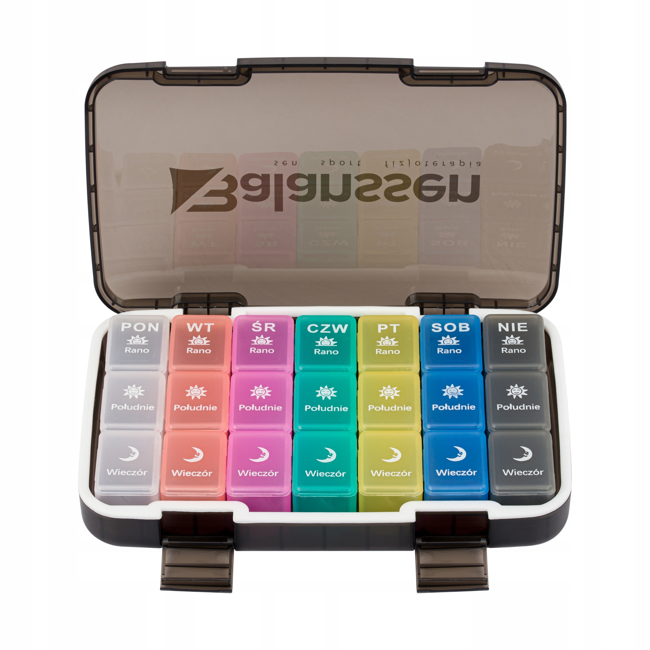 Dzięki niemu ryzyko pominięcia dawki medykamentów zostaje zminimalizowane. Pojemnik posiada odpowiednie komory, które pomieszczą nawet największe lekarstwa, jest wygodny również w podróży.