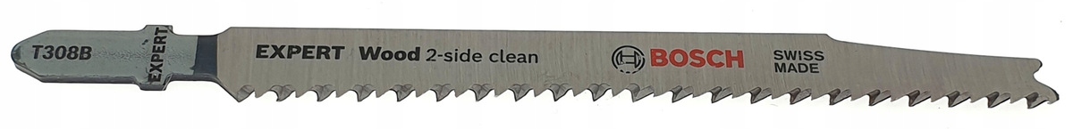 Dzięki wyjątkowo ostrym, precyzyjnie szlifowanym zębom brzeszczot do wyrzynarki Bosch EXPERT ‘Wood 2-side clean’ doskonale nadaje się do cięcia miękkiego drewna o grubości do 50 mm. Stolarze mogą uzyskać doskonałe wykończenie i nie tracić czasu na szlifowanie po każdym cięciu wyrzynarki. Dostępne do cięć prostych (T308B), cięć zakrzywionych (T308BO) i dokładnych cięć pod kątem (T308BP)