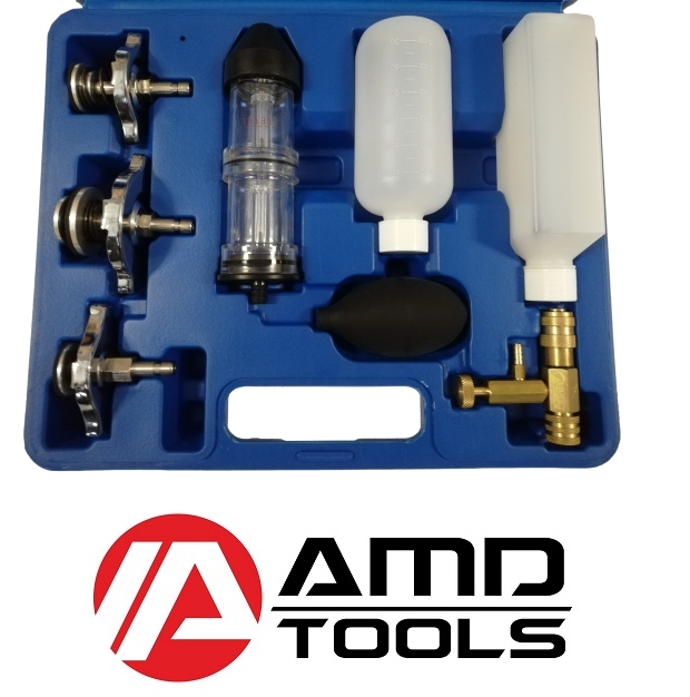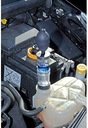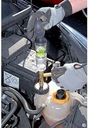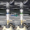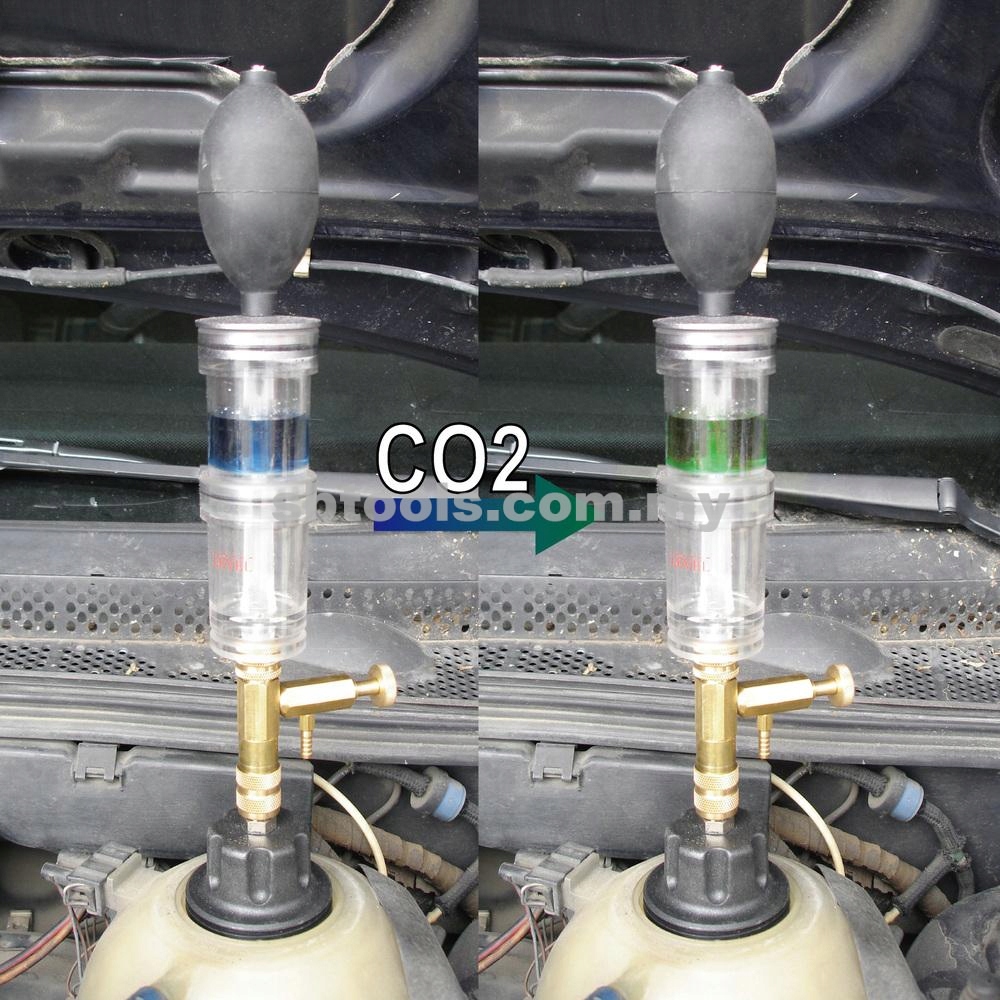 Прибор позволяет легко диагностировать и быстрое обнаружение повреждений прокладки под головкой. В случае повреждения прокладки под головкой или самой головки часть выхлопных газов. содержащие m.in. CO2 поступает в систему охлаждения. Принцип работы прибора основан именно на измерении содержания СО2 в системе охлаждения. Реакционная жидкость (не входит в комплект ) в камере тестера будет реагировать с газами из системы охлаждения и при повышенном содержании СО2 цвет изменится. Двухкамерная конструкция прибора (с фильтром между камерами) позволяет отделить остатки в первой камере (например, капли жидкости холодильной). это может негативно повлиять на результат теста.
