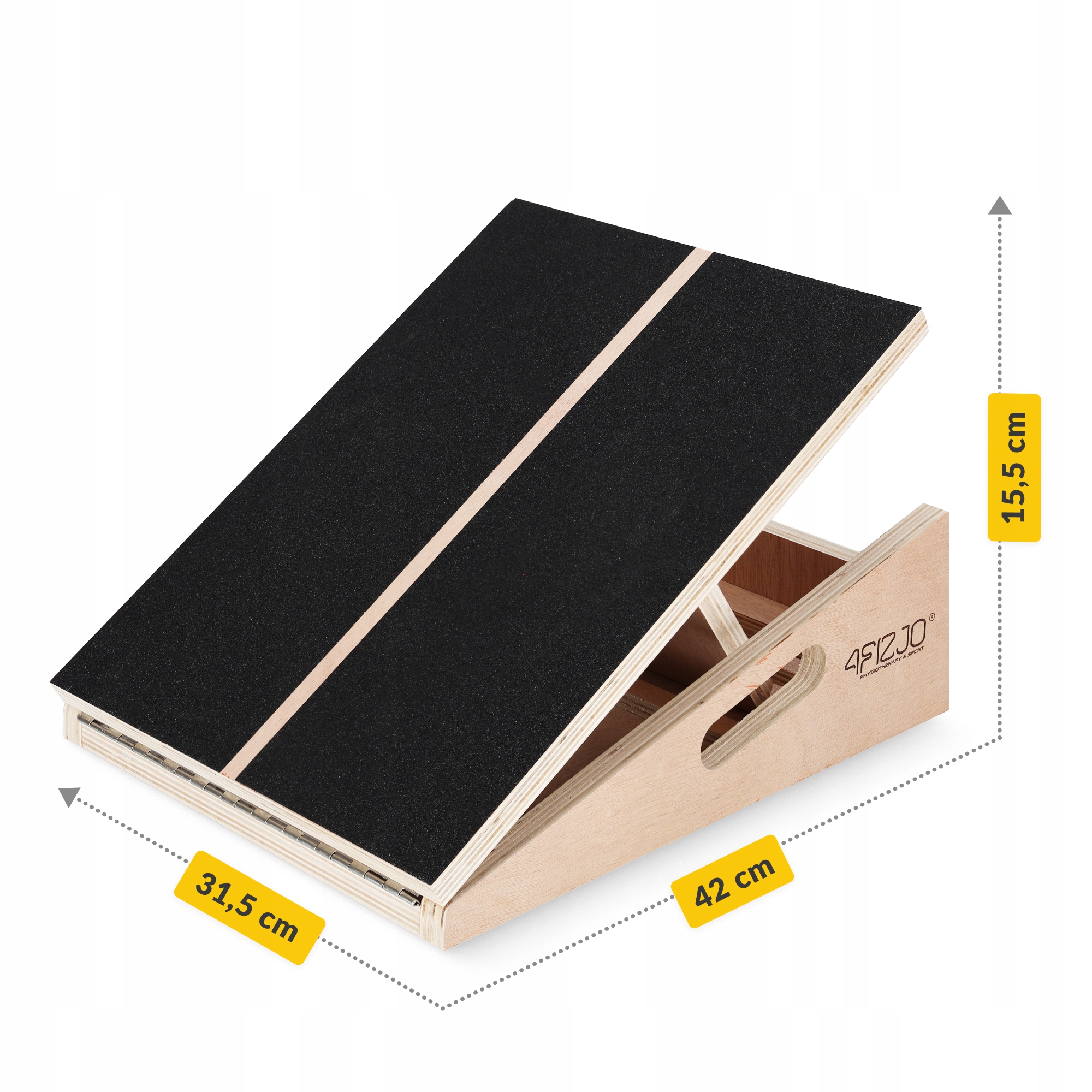 Drewniana platforma SLANT BOARD do rozciągania 4FIZJO pozwoli Ci zadbać zarówno o siebie, jak i o naturę. Produkt powstał z naturalnego i biodegradowalnego materiału. Sprzęt wykonano z wysokiej jakości sklejki drewnianej. Wierzch platformy pokrywa czarna antypoślizgowa powierzchnia zapewniająca bezpieczeństwo i stabilność podczas ćwiczeń.