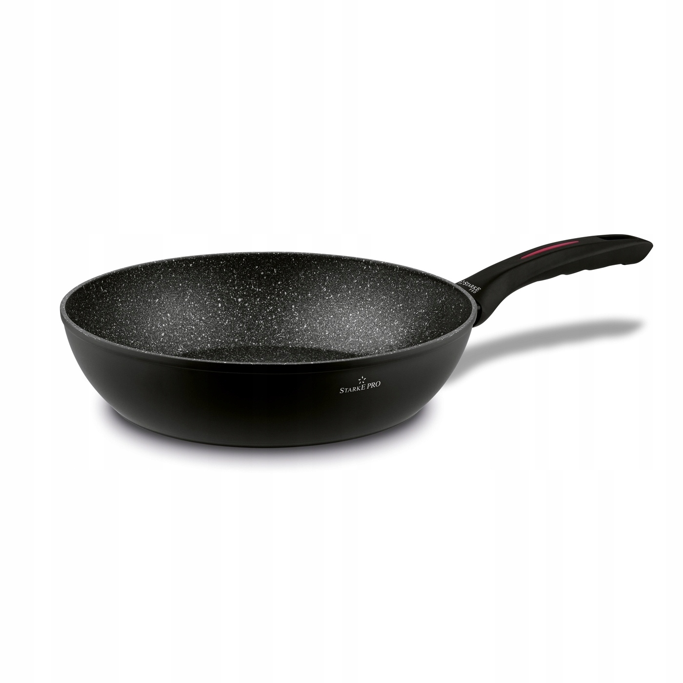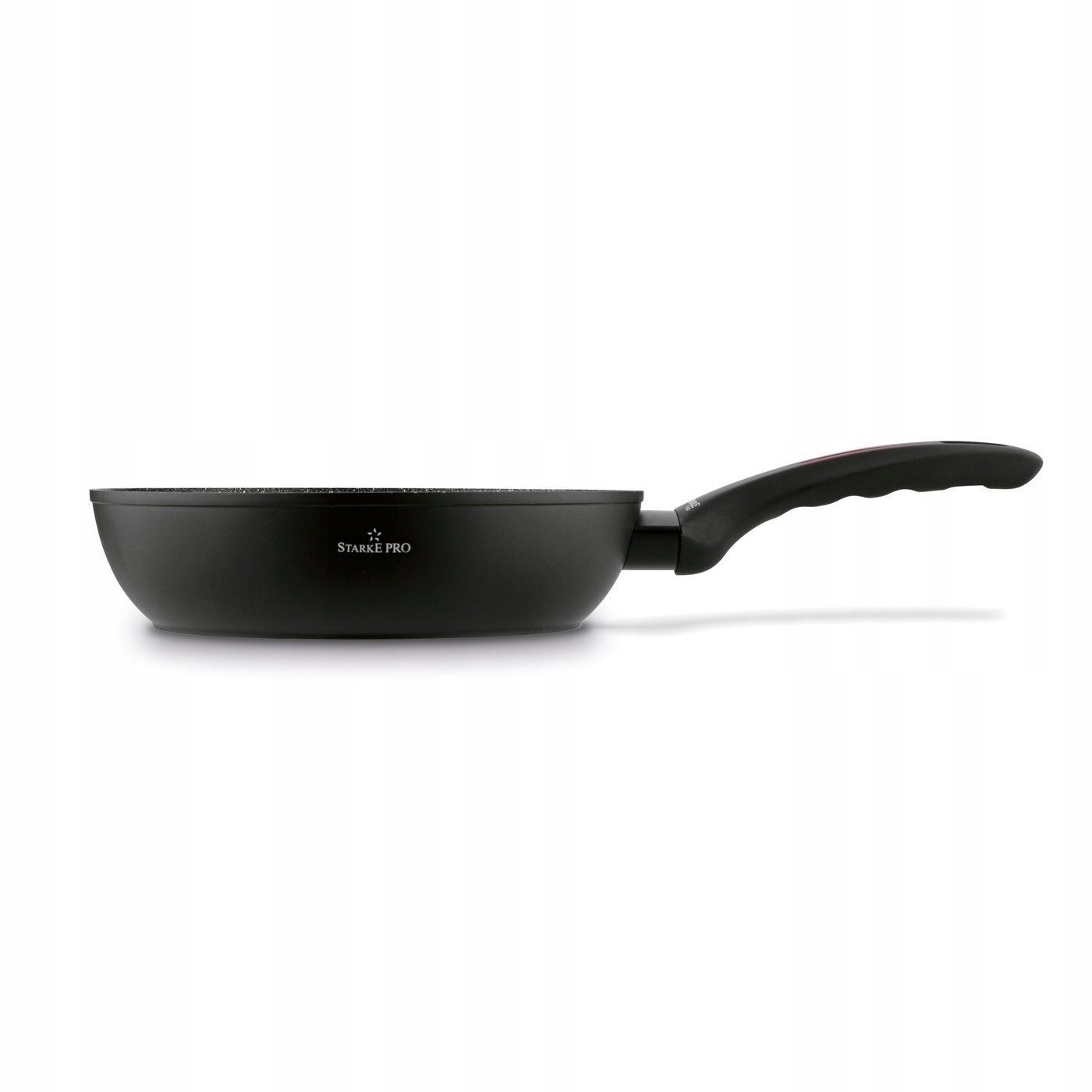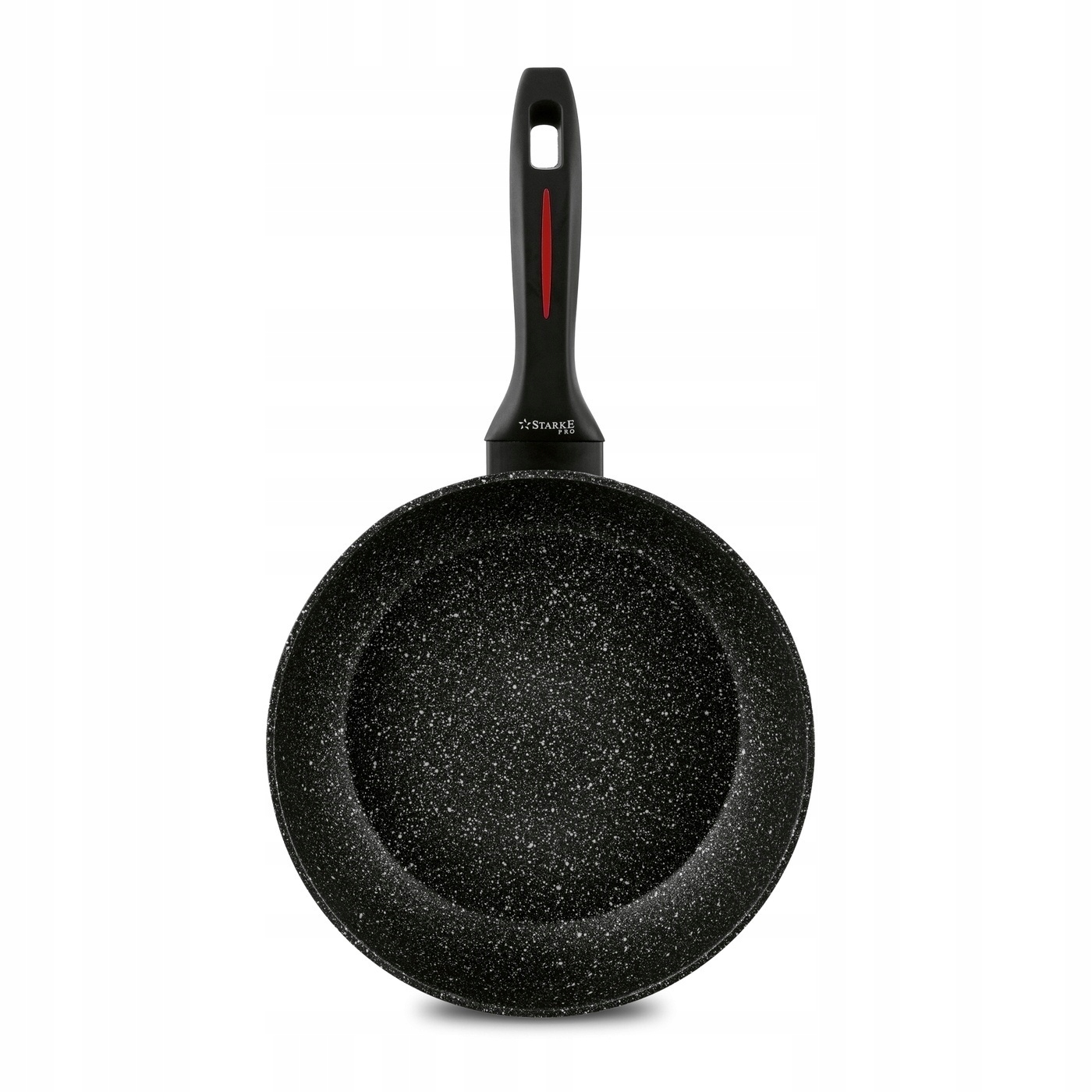 Głęboka patelnia granitowa Starke Pro Piccante 24 x 6,5 cm może być używana na indukcji oraz kuchenkach gazowych, ceramicznych i elektrycznych. Jej korpus został wykuty na gorąco z certyfikowanego aluminium. Dzięki temu jest dobrze wyważony, ciężki i ma solidne ścianki. Ma też dużo wyższą wytrzymałość na wysoką temperaturę i uszkodzenia. Zastosowana powłoka non-stick typu stone została wzbogacona o drobinki granitu. Jest też grubsza niż standardowe powłoki 3-warstwowe zapobiegające przywieraniu i przypaleniu składników. Jej wytrzymałość sięga 10 000 cykli ścierania - jeden z lepszych wyników w skali światowej. Ochronę przed oparzeniem dłoni zapewnia nienagrzewający się i nieślizgający w ręce uchwyt soft touch. Model polecany jest przez Piotra Kucharskiego, który osobiście sprawdził jej możliwości i dał im wysoką ocenę. Usmażysz na niej, co tylko chcesz na małej ilości masła lub oliwy. Wygodnie zamieszasz składniki, a także umyjesz produkt. Nowoczesne wzornictwo marmurowej głębokiej patelni granitowej Piccante gustownie wzbogaci twoją kuchnię - to prosta droga do komfortu tworzenia dietetycznych i lekkostrawnych posiłków.