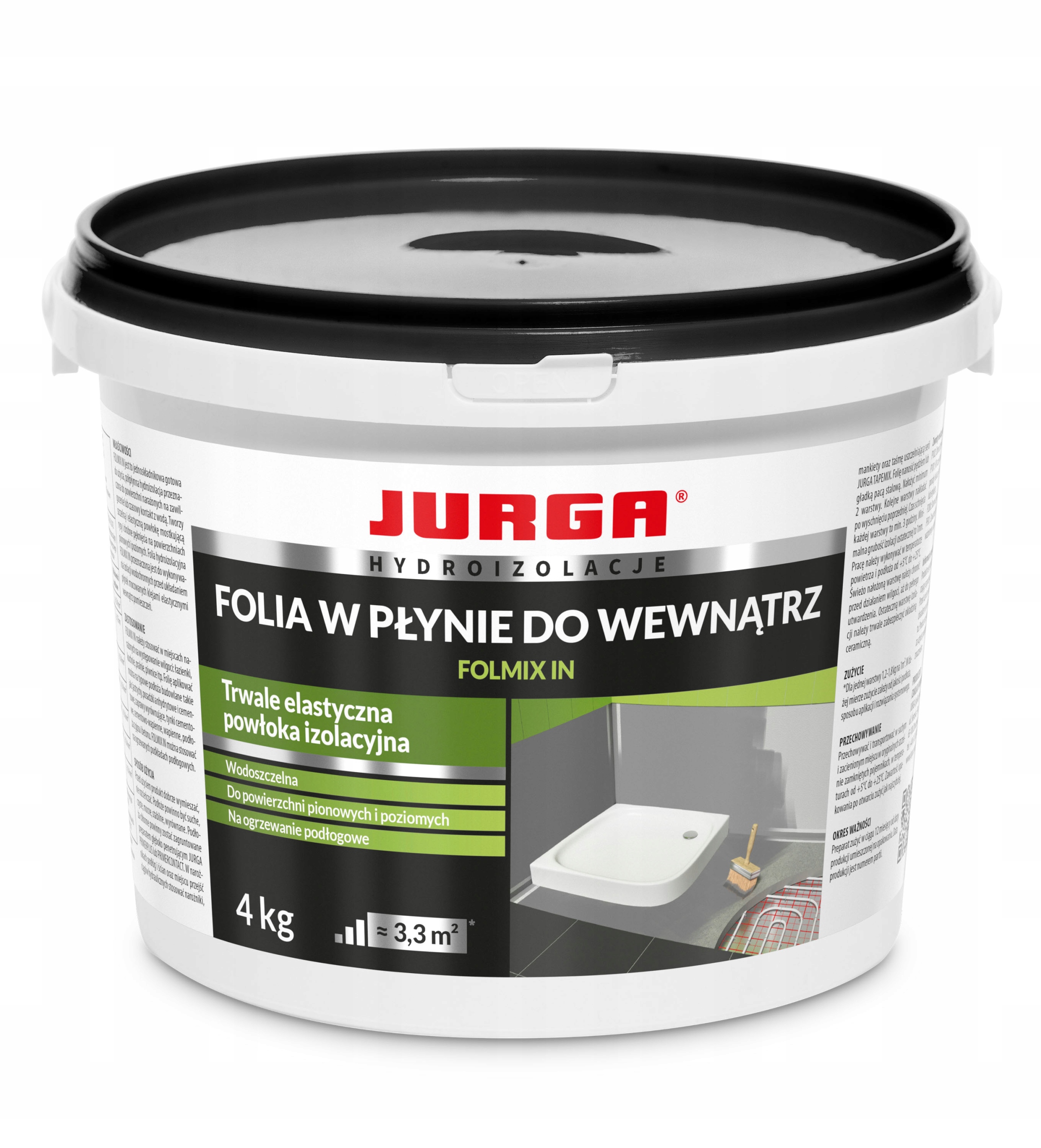 ''Jurga Folmix In'' to innowacyjna folia w płynie, stworzona specjalnie do zabezpieczania powierzchni wewnątrz budynków. Jest to zaawansowany produkt, który łączy zalety tradycyjnych folii z elastycznością i łatwością aplikacji płynnych rozwiązań. ''Folmix In'' tworzy trwałą, odporną na działanie wilgoci powłokę, która chroni powierzchnie przed wnikaniem wody, brudu, a także innych szkodliwych substancji. Dzięki swojej zaawansowanej formule, jest łatwy w aplikacji i zapewnia doskonałe zabezpieczenie powierzchni, poprawiając trwałość i wytrzymałość budynku.