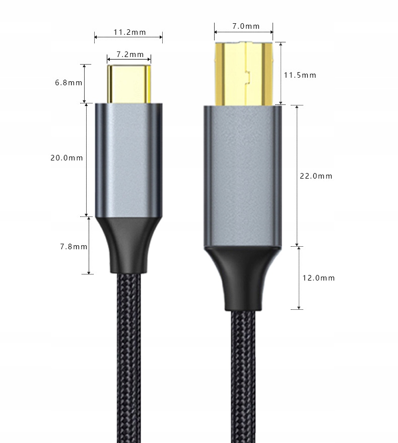 Uniwersalna końcówka USB-C idealnie pasuje między innymi do laptopów, komputerów czy Macbooków. Jest też kompatybilna ze złączem Thunderbolt 3. Z kolei wtyczka USB-B doskonale działa ze skanerami, drukarkami i faksami.